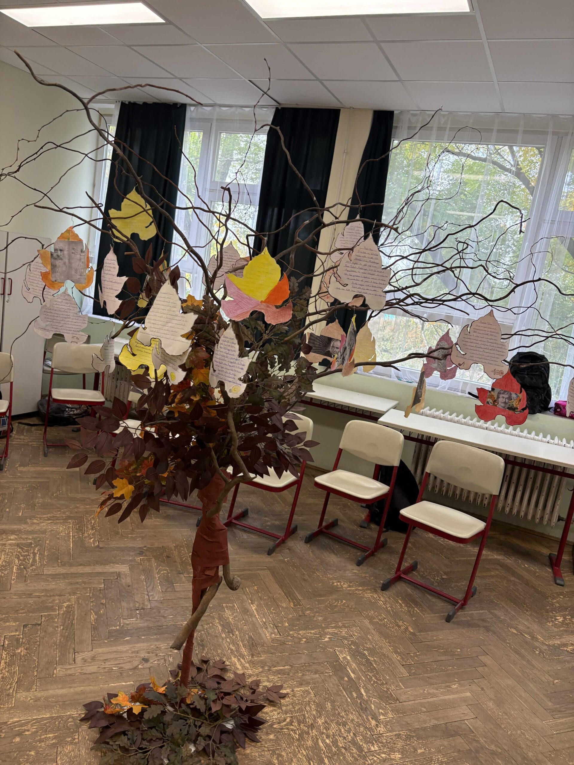 Az elkészült, „feldíszített” fa körül további beszélgetések bontakoztak ki: a tanulók megosztották gondolataikat arról, hogy miért fontos a hála kimutatása, hogyan hat a kapcsolataikra és a közösség légkörére.