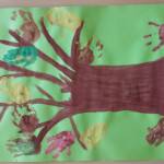 A Mackó csoport tagjai kis- és középsős korú gyermekek. A hála kifejezést többen még nem ismerték, ezért először a fogalom magyarázatával kezdtük a beszélgetést. Ezután az idősebbek már meg tudták fogalmazni, hogy miért is lehetünk hálásak. A beszélgetést követően elkészítettük a csoport hálafáját, melyre a gyerekek egy-egy fogalom elmondása után, tenyérlenyomattal őszi leveleket helyeztek el. A kép elkészülte után megbeszéltük, mennyi mindenért lehetünk hálásak, és mennyi apró dolog tudja szebbé és boldogabbá tenni az életünket.