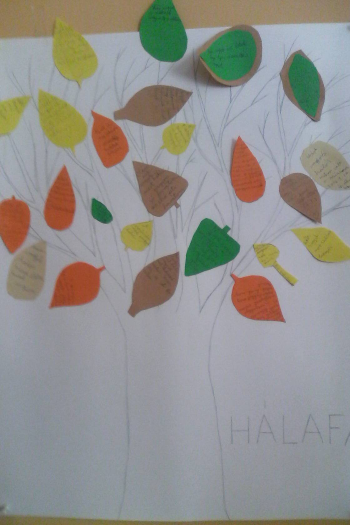 Egy hálafát készítettünk a gyerekekkel, amire színes leveleket vágtak ki, és azokra írták rá, hogy kinek és miért hálásak.