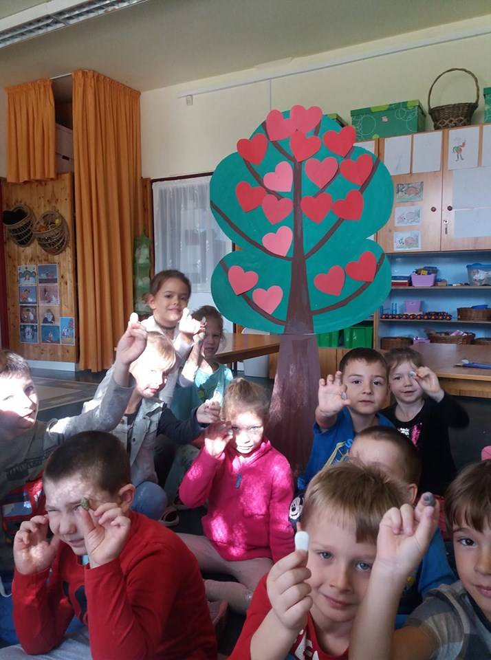Óvodai csoportunkban ettől az évtől kezdtük el A Boldogságóra Programot megvalósítani. Nagy izgalommal vágtunk bele, kíváncsiak voltunk, hogy mennyire áll közel a gyermekekhez ez a téma. Az első foglalkozás a Boldogságfokozó hála jegyében telt. Először csak szabadon beszélgettünk magáról a kifejezésről, hallották e egyáltalán ezt a szót. Néhány kisgyermek nyújtotta a kezét, hogy ő tudja mit jelent, és a szeretettel asszociálták. Ezután példákat mondtam arra, hogy kinek is lehetünk hálásak, és miért, illetve hogyan tudjuk kifejezni a hálánkat a másik ember felé. Ők is elmondták, hogy kinek és miért hálásak a családban. Elmeséltük nekik a Hálás fa meséjét is. Ezután a közösen elkészített Hálafára felraktuk azokat a szívecskéket, amit egymásnak nyújtottak át előtte, hálájuk kifejezéseként. Kértem őket, hogy indokolják meg döntésüket. Együtt gyönyörködtünk a közös Hálafánkban, ami ezentúl majd díszíti a csoportszobánkat, és virít rajta a sok piros szív. Hálám jeléül én is osztottam nekik szép kis köveket, amit a tengerparton gyűjtöttem még a nyáron, azt is elmondtam, kinek miért vagyok hálás. A gyermekeknek nagyon tetszett a foglalkozás, aktívak, érdeklődőek voltak. Megható volt látni ahogy ölelték egymás, és elérzékenyültek a szívecskék átadásánál.
