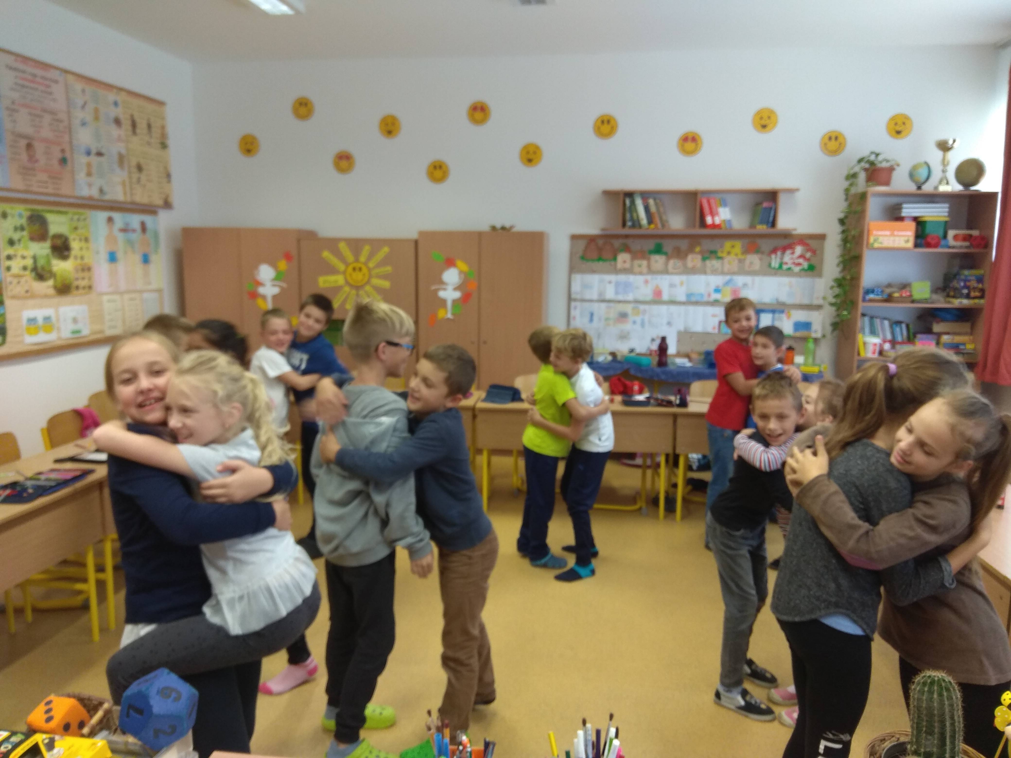 Tanítványaimnak 2019. szeptember 20-án tartottam az első boldogságórát, mely nagyon jó hangulatban telt. Első témaként a hálával foglalkoztunk. Öröm volt nézni a gyerekek arcát, mikor elmondták egymásnak, miért hálásak társuknak. Jó érzéssel töltött el, hogy minden tanítványom csak pozitív és kedves gondolatot fogalmazott meg osztálytársával kapcsolatosan. Az ajándékba kapott cd-ről több zenét is meghallgattunk. A gyerekeket elvarázsolta Bagdi Bella zenéje. A dallamokhoz, szövegekhez ők maguk találtak ki mozdulatokat, melyeket közösen el is játszottunk. Az óra végén elkészítettük a mi hálafánkat is.