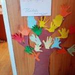 Majd a kis Samunak ajándékot készítettünk, egy hálafát, aminek a leveleit a gyerekek vágták ki a saját kezük mintájára. A színes lapokra mindenki rárajzolta, hogy kinek, és miért hálás.