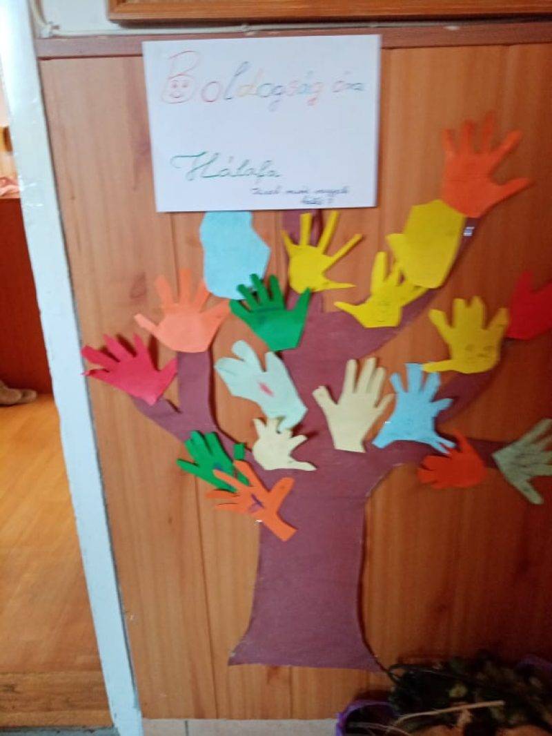 A mai napon a Nagyigmándi Kincseskert Óvoda süni csoportjában egy különleges témát jártunk körül a boldogságóra keretein belül. Első lépésben reggel megismertettük a gyerekekkel az aktuális témánkat: a hálát, Bezzeg Andrea A hálafa története című meséje alapján. A gyerekek érdeklődéssel figyelték a történetet, majd megbeszéltük a hallottakat, hogy mit jelent maga a szó: hála, és ki, miért, kinek hálás. Nagyon sok érdekes, és főleg okos dolgot soroltak fel nagycsoportosaink. Volt, aki édesanyájának hálás, amiért karácsonykor mézeskalács sütit süt neki, akadt olyan, aki nagymamáját említette, mert sokszor vigyáz rá, de sokan a csoport béli barátjuknak adtak hálát, amiért olyan jókat tudnak játszani együtt.