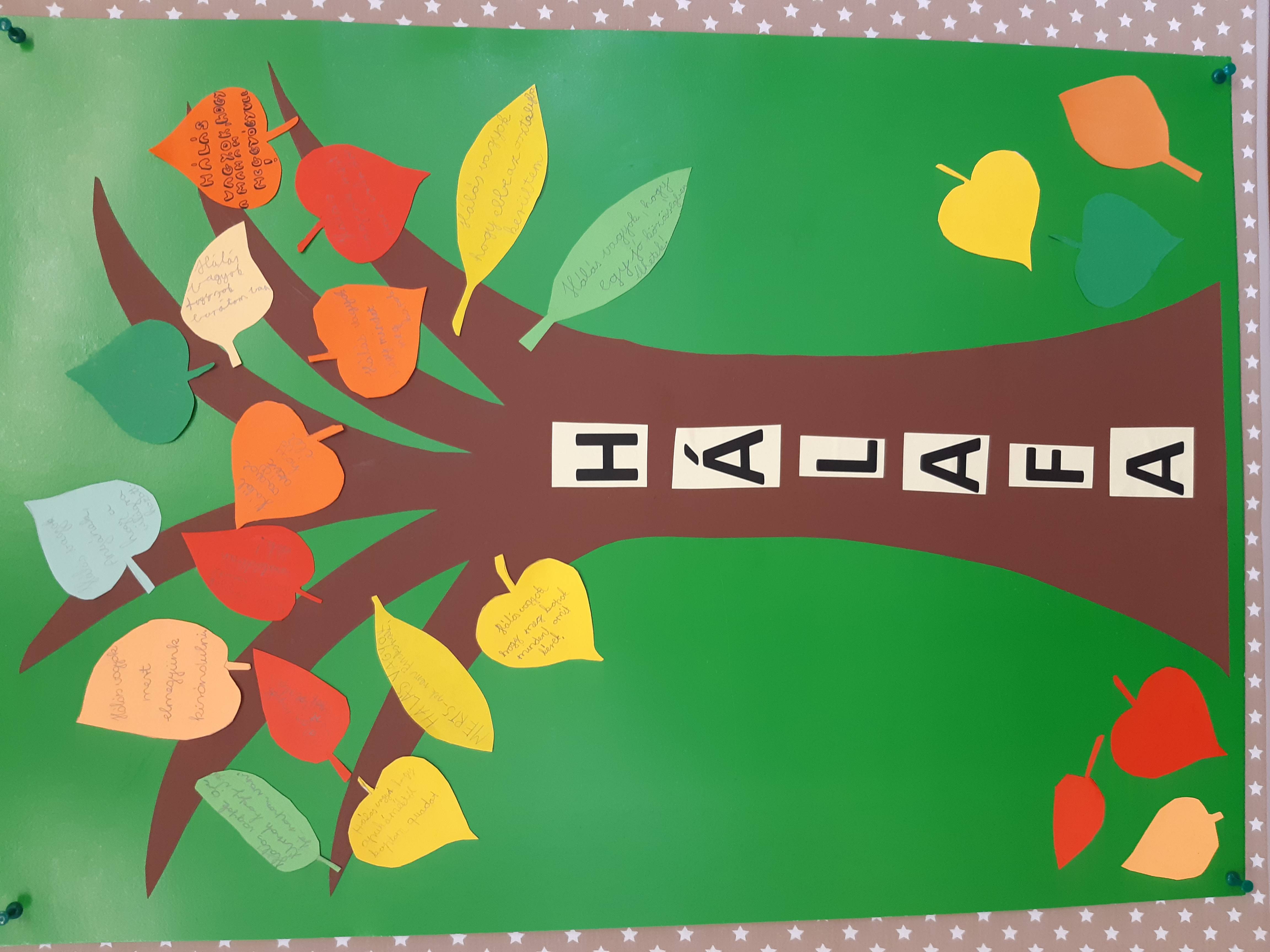 A hála témaköréhez kapcsolódóan a 6. osztályosokkal hálafát készítettünk.