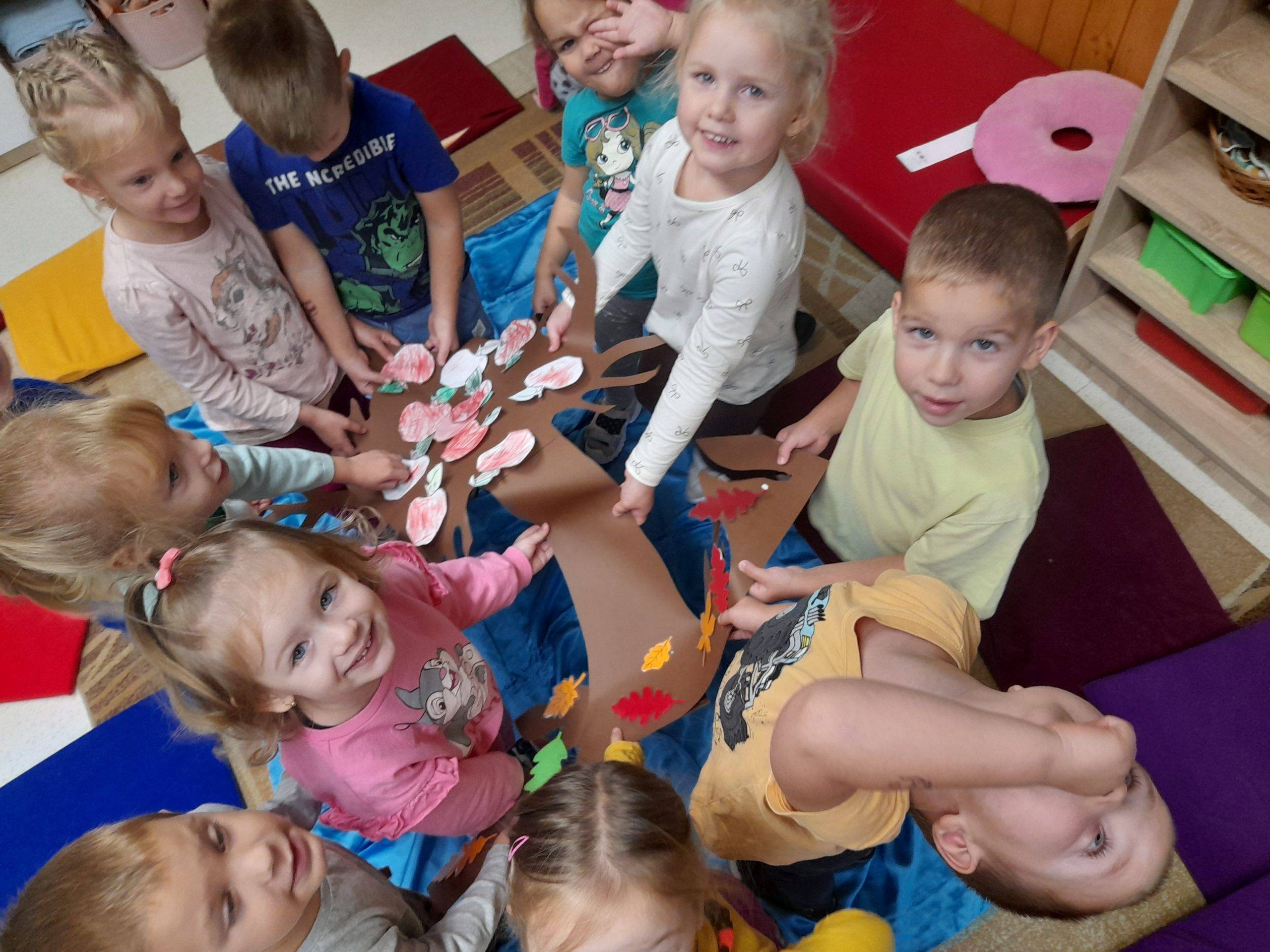 Resztoratív beszélgetőkörön belül megbeszéltük mi a hála, ki,miért lehet hálás.A kör közepére elhelyeztük a fát,és a beszélgetés végén rátette mindenki a saját maga színezett almáját,majd közösen elvittük,és „elültettük”a fánkat a csoportba.Így életre kelt a csoport hálafája.