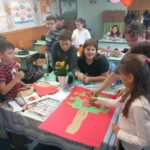 Az iskolánk aulájában kiállítást is szerveztünk a Boldogságóra Programban rész vevő osztályok alkotásaiból.