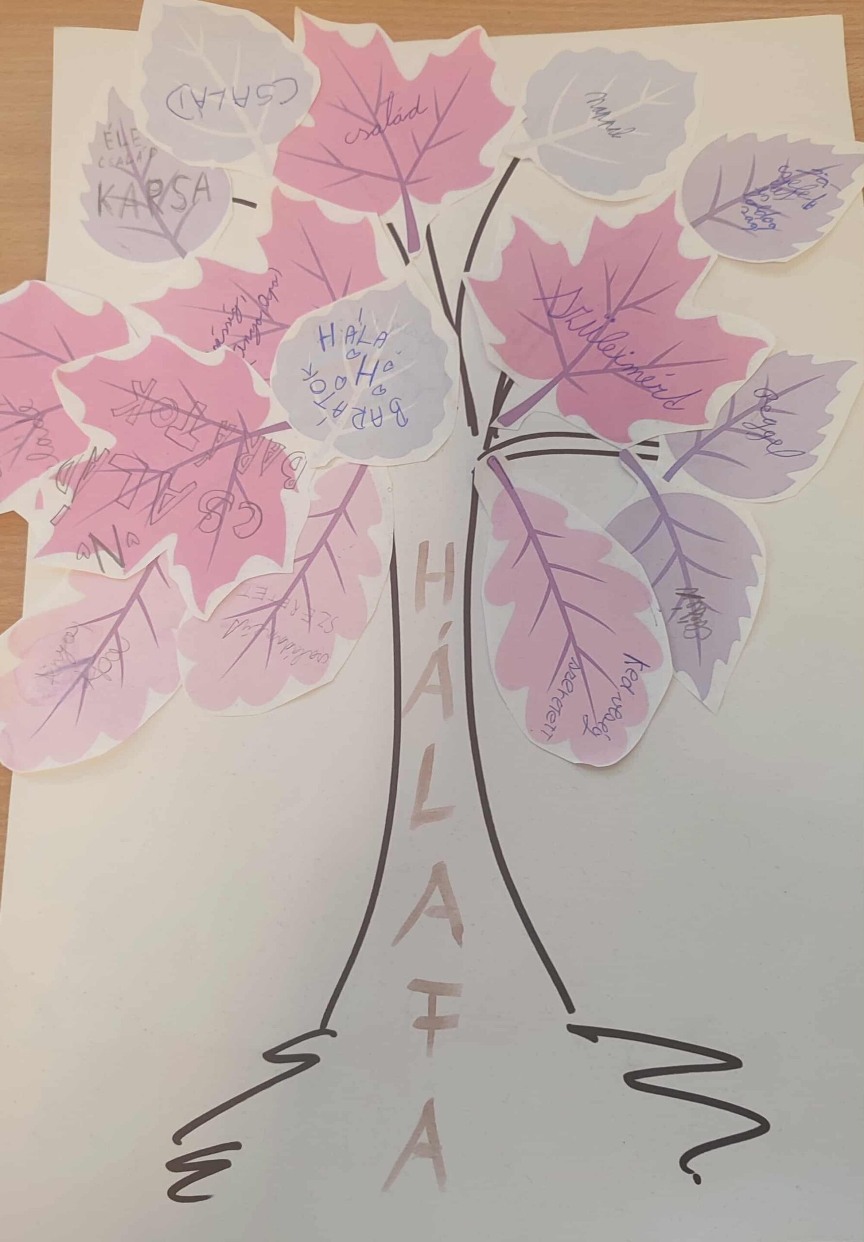 Elkészült az osztály közös hálafája. A rákerülő levelek azt szimbolizálták, amiért a gyerekek hálásak a mindennapi életükben. Közben történeteket olvastunk a háláról. Sok-sok egyéni történet hangzott el arról is, miért éreznek hálát ők maguk egy-egy nap végén.