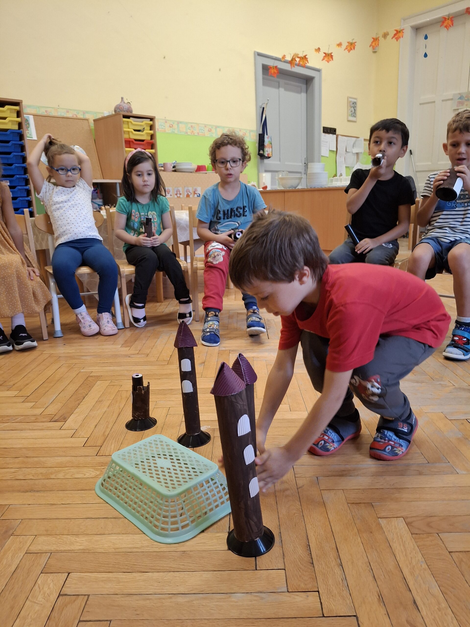 Játékidőben wc papír gurigákból elkészítettük a „ Boldogság Vár” elemeit, majd közösen felépítettük. Megbeszéltük hogy ezeken a beszélgetéseken mindig egy lépcsőfokra feltesszük az adott hónap jelét, és az utolsó hónapban megnyílik a Vár kapu, számunkra az öröm, és boldogság élményeivel gazdagabban.