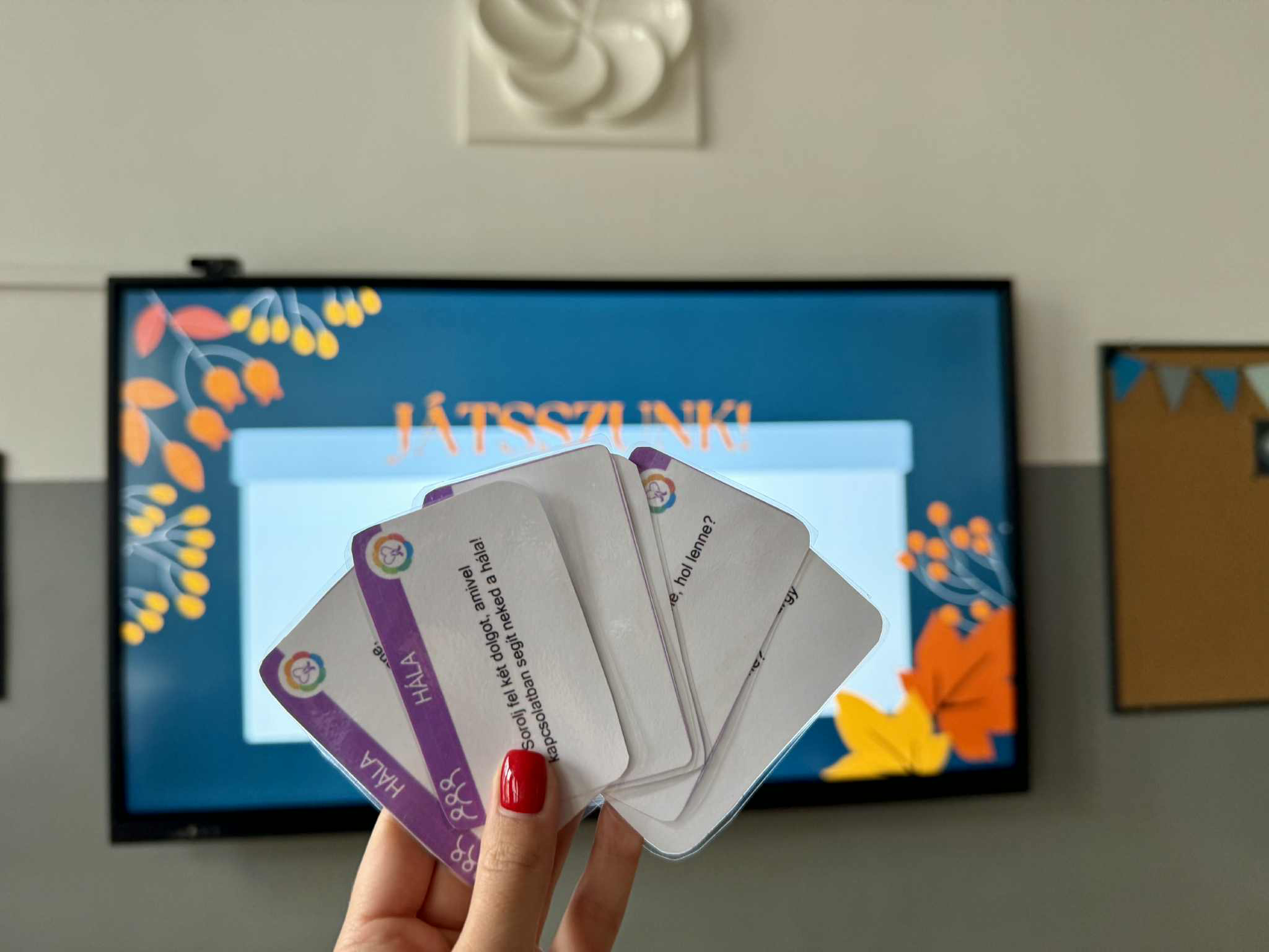A tanulóimmal technika óra keretein belül dolgoztuk fel a hála témakörét. Az órát egy beszélgetéssel kezdtem velük a hálakártyák segítségével. Nagyon kreatív válaszokat kaptam a gyerekektől, mint például: „Ha a hála egy tárgy lenne, akkor az egy olyan fényképezőgép lenne, ami a mindennapi boldog pillanatokat örökíti meg.” Ezenkívül megható válaszok is érkeztek, mint pl.: „Azért vagyok hálás, mert megszülettem és a családom szeret engem.” Élvezték az óra menetét, a beszélgetés után egy- egy hálafát keszítettek a tanulók csoportokban. Amikor bemutatták munkájukat olyan mondatok hangoztak el, mint például: „Hálás vagyok, hogy ebben a csoportban dolgozhattam, mert nagyon jól tudtunk együtt dolgozni.” Ekkor úgy éreztem, hogy hatásos volt az óra. A gyerekek az óra végére egy sokkal nyugodtabb állapotba kerültek. Ezután a hála átjárta az egész délutánunkat. 🙂