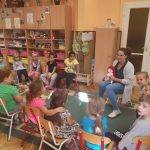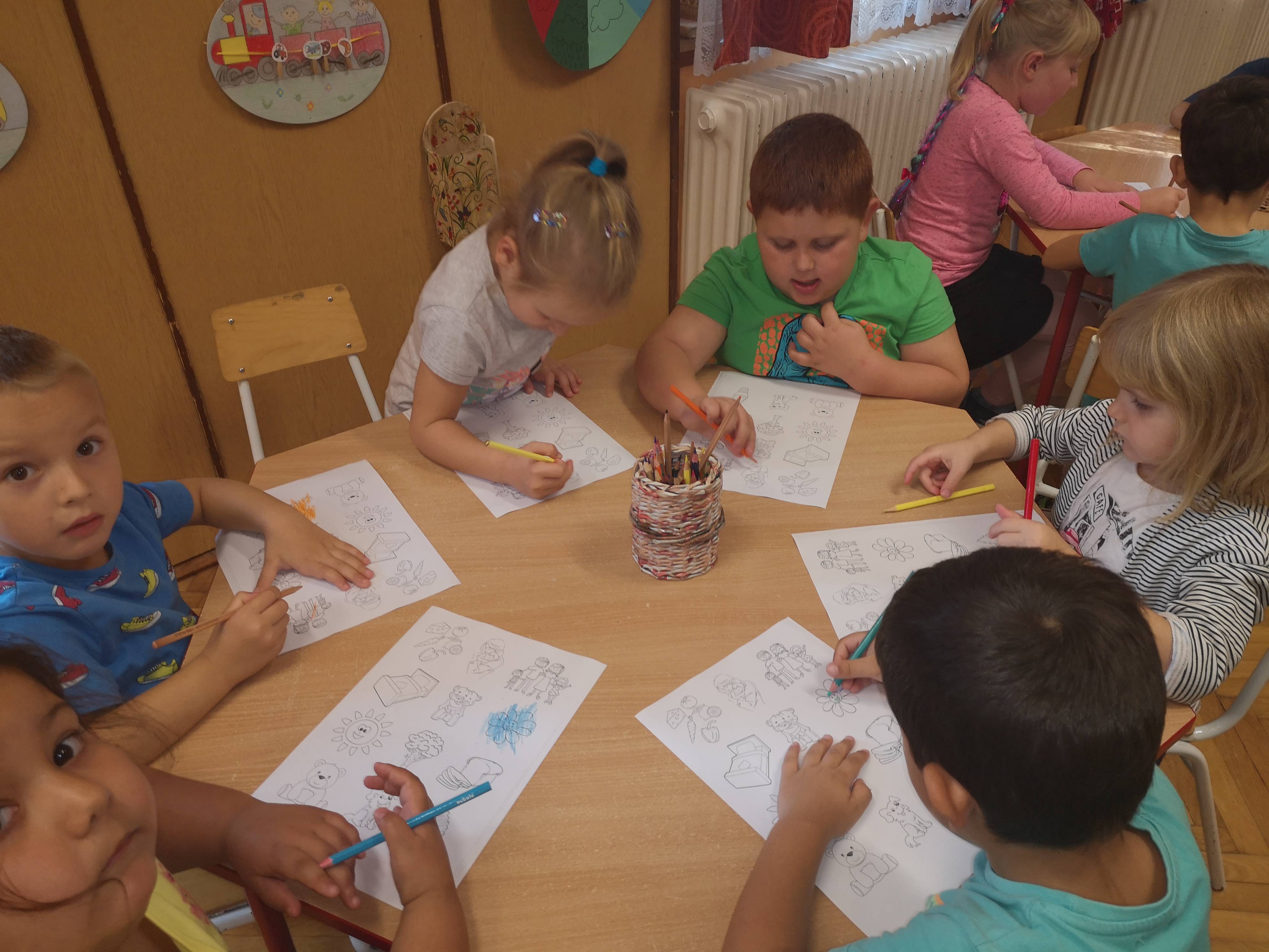 Az új nagy-középső csoport megismerkedett Boldog Dórával. Majd a Hálafa leveleit körbeadva kíváncsiságukat felkeltve elmeséltem a Hálafa történetét. A mese után beszélgettünk arról, hogy miért is lehetünk hálásak. A gyermekek többsége sok szép dolgot mondott, miért is hálás. Majd a tevékenység zárásaként, a Szép nap, ölelj át most engem… c. dalt hallgatva színezték, miért is hálásak.