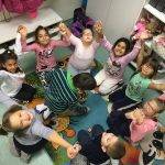 A hálagyöngyöket egyenként tettük be a hálakosárba és minden kis tanuló köszönetet mondott valamiért, ami fontos az életében.