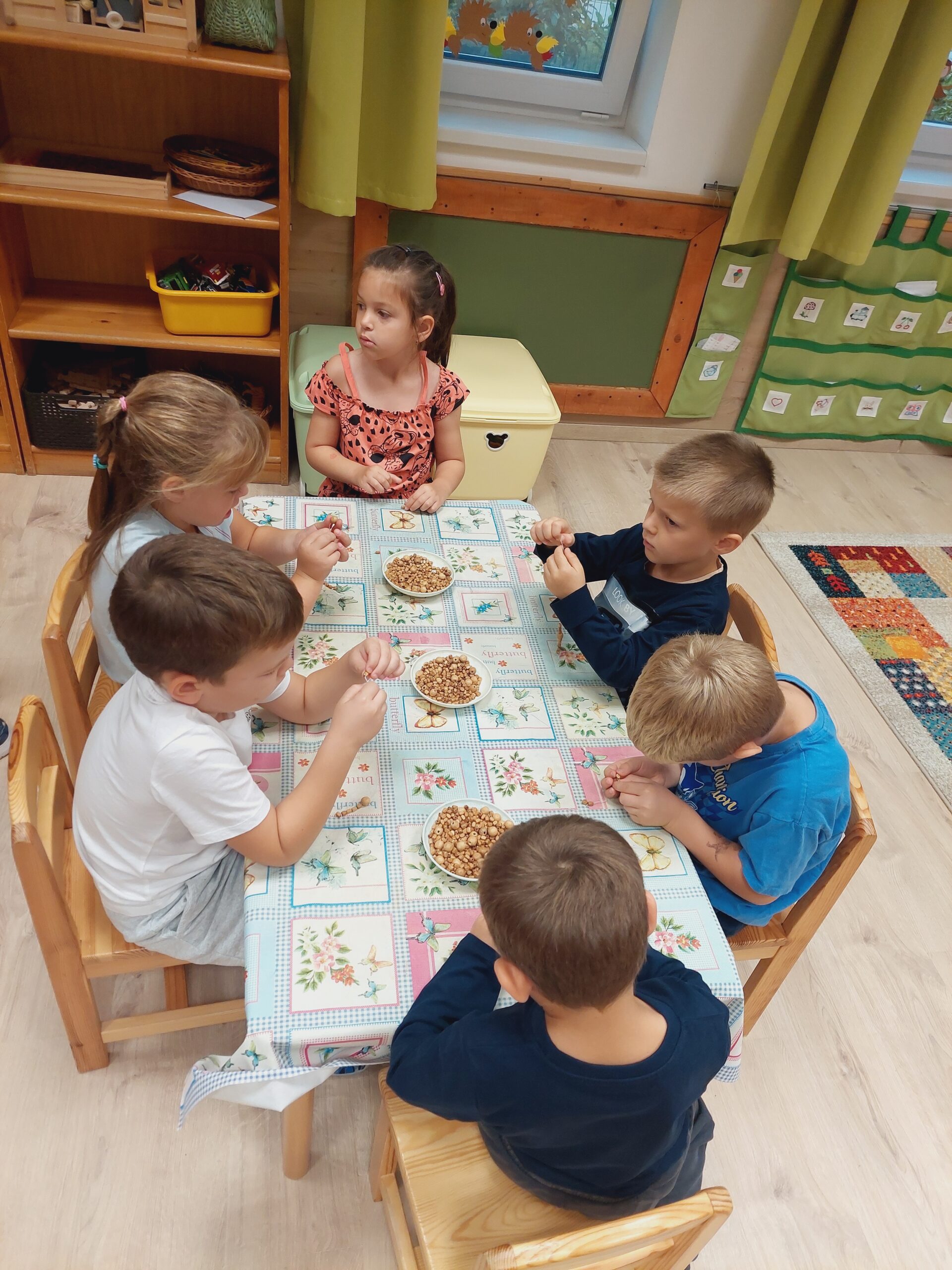 A gyermekekkel lecsendesítést követően, megbeszeltük, mit jelent hálásnak lenni, ki, miért hálás. A nagy szemű fa gyöngyöt mikor fűzték, akkor fogalmazták meg miért hálásak. A végén karkötők összefűztük és hazavihették ajándékba, hogy otthon is el tudják mesélni miért hálásak.