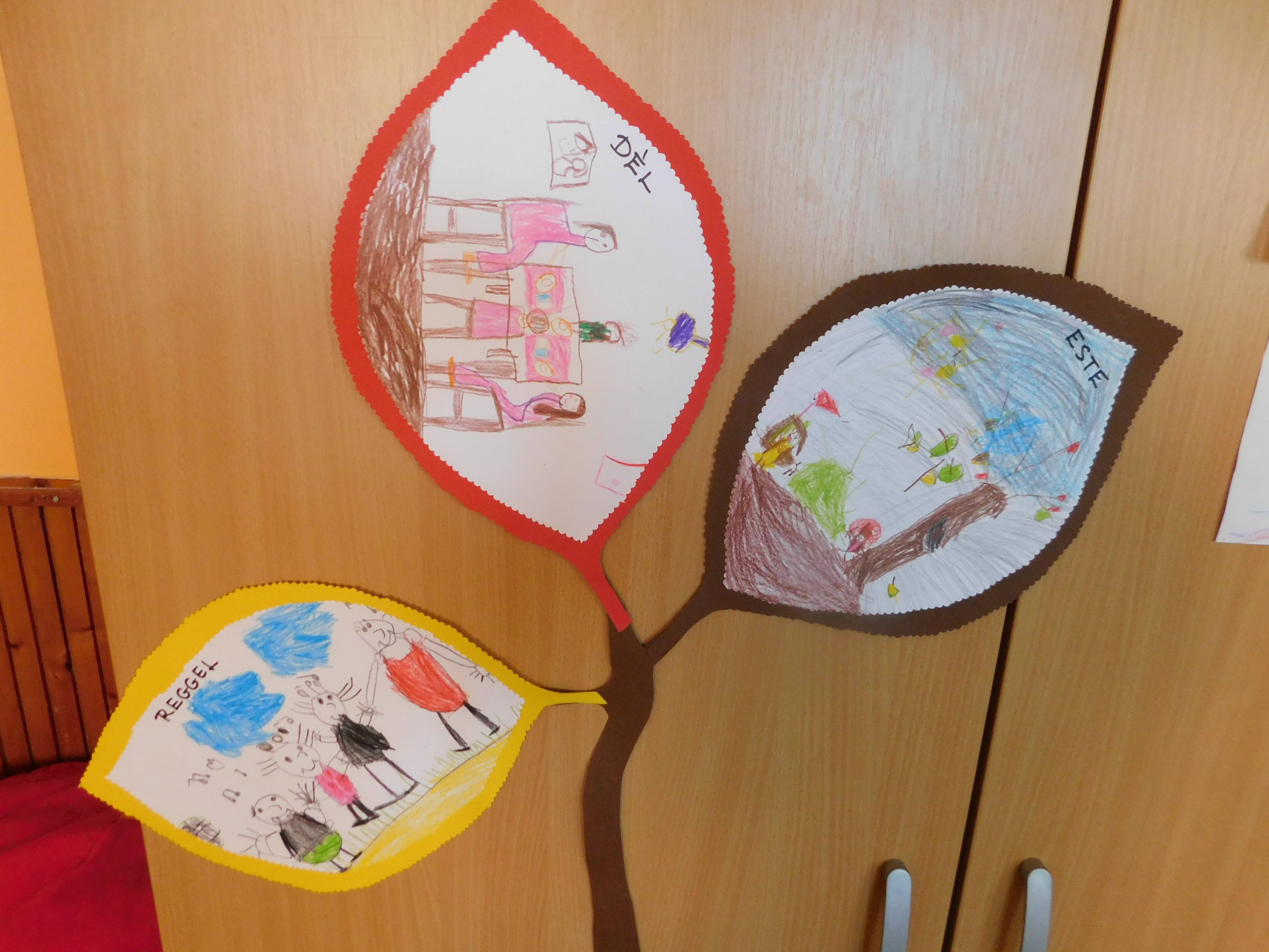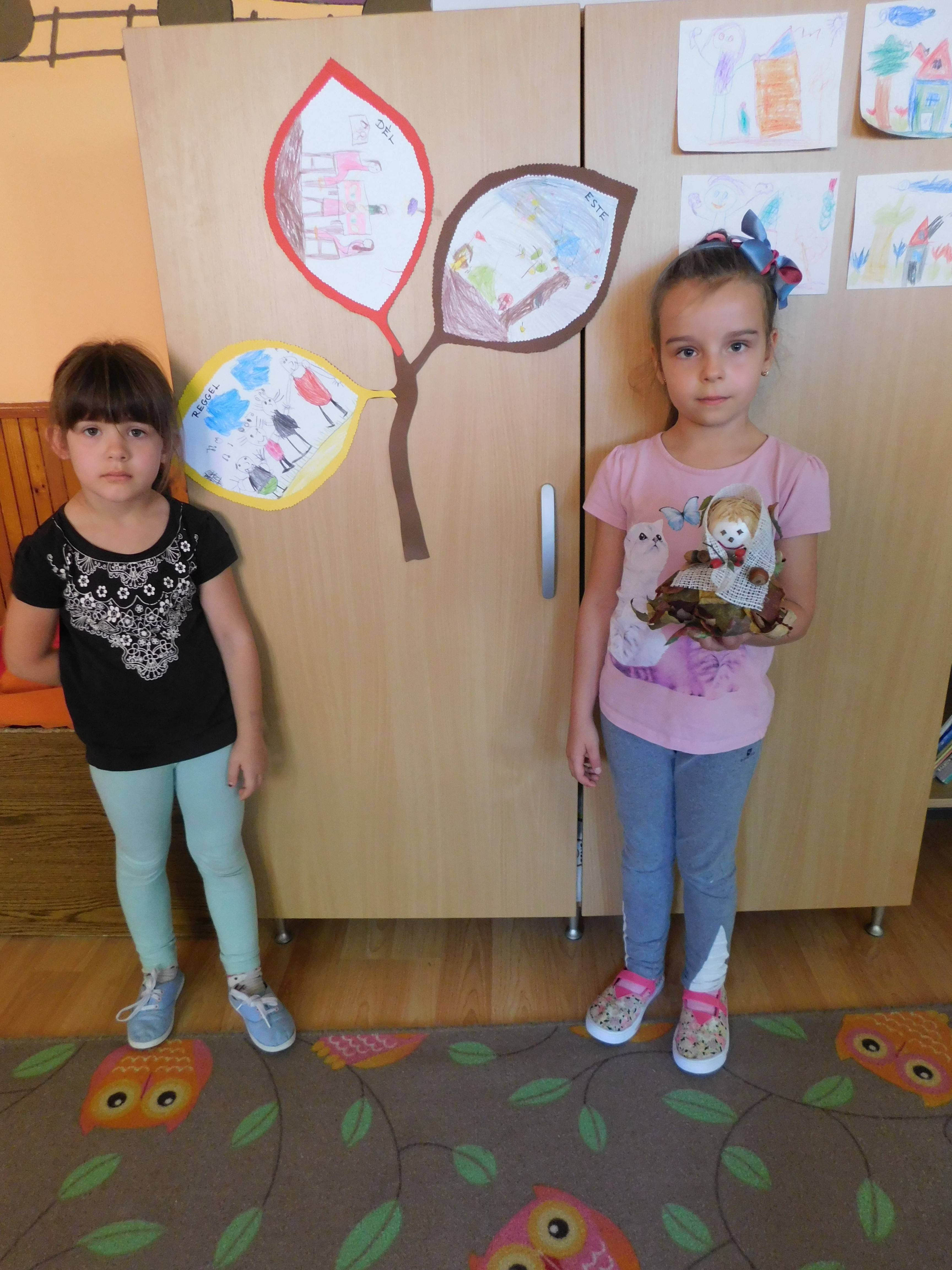 A téma feldolgozása során mindig előkerültek a hozzákapcsolódó dalok,versek,mondókák,mozgásos játékok és a mese. Meghallgattuk a hónap dalát,majd megbeszéltük,miről szólt a dal , és milyen érzés a hála. A gyerekekkel közösen,mindenki a saját jelét megrajzolva,kis segítséggel ,elkészültek a „hálakarkötők”.A szőnyegen körbeülve ajándékozták meg egymást. Mindenki annak adta,akinek szeretett volna köszönetet mondani valamiért pl.”mindig segít nekem,megvéd ,jót lehet vele játszani” stb. A boldogságfokozó hála témakört az ősz,őszi gyümölcsök és termések téma kapcsán is beépítettük a foglalkozásokba. Megismerkedtek”Őszanyóval”,aki „őszi kincseket” hozott a kosarában. Megnéztük és beszéltünk arról,miért vagyunk neki hálásak,mit ad nekünk ősszel. Sok jó ötletük volt a gyerekeknek/pl. Terméseket ,sok finom gyümölcsöt ad,szép,színes faleveleket,búvóhelyet nyújt az állatoknak stb./ Őszanyót egymásnak átadva mondhatták el ,hogy ki,miért hálás. Megköszönték,hogy hozott almát,amit közösen el is fogyasztottak. A hála feldolgozását a hónap zenéjének meghallgatásával,eléneklésével zártuk.