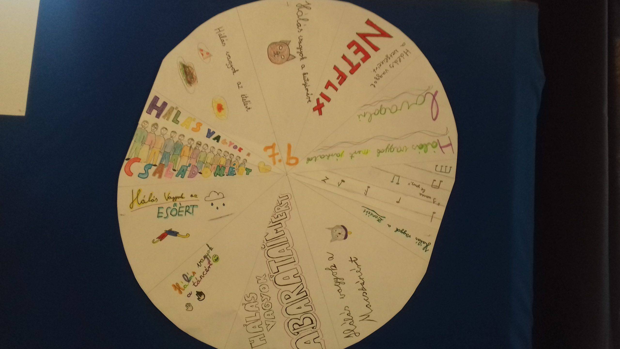 Ismét új csoporttal kezdtem ezt a tanévet. Hetedikes tanulók kapcsolódtak be a Boldogságóra programba és igen aktívan és érdeklődve dolgozták fel a hála témáját.