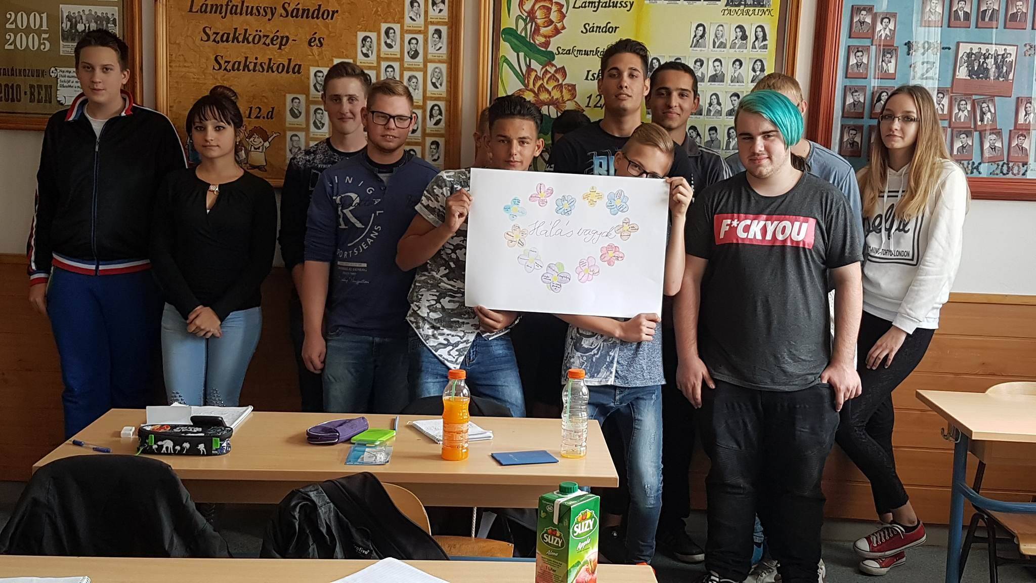 A 10.a osztály hálakertje önfeledt, boldog percek közepette készült el, mottójuk a következő: „A hála lehetetlenné teszi a boldogtalanságot. Ez az egyik legfontosabb titok, amit meg kell tanulnod.”