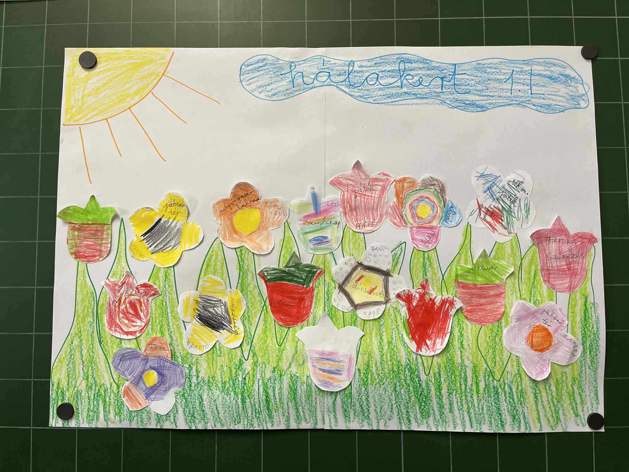 Új kis elsőseinkkel most kezdtük a programmal való ismerkedést. A hála témája ehhez nagy segítséget nyújtott, hiszen szemléletes példákkal, a segítés formáinak tudatosításával indítottuk a foglalkozást. A hálafa meséjének feldolgozása nagyon tetszett a gyerekeknek, egymást kedves mozdulatokkal is megajándékoztuk. Első közös csoportmunkaként alkottuk meg az osztály HÁLAKERTJÉT, ahol minden kis virág egy-egy gyermeket és érzéseit szimbolizálja. A szép nap, ölelj most át engem dalt más órákon is hallgatjuk, sokat hozzátesz a pörgésből nyugalmi állapotba kerülésünkhöz!