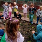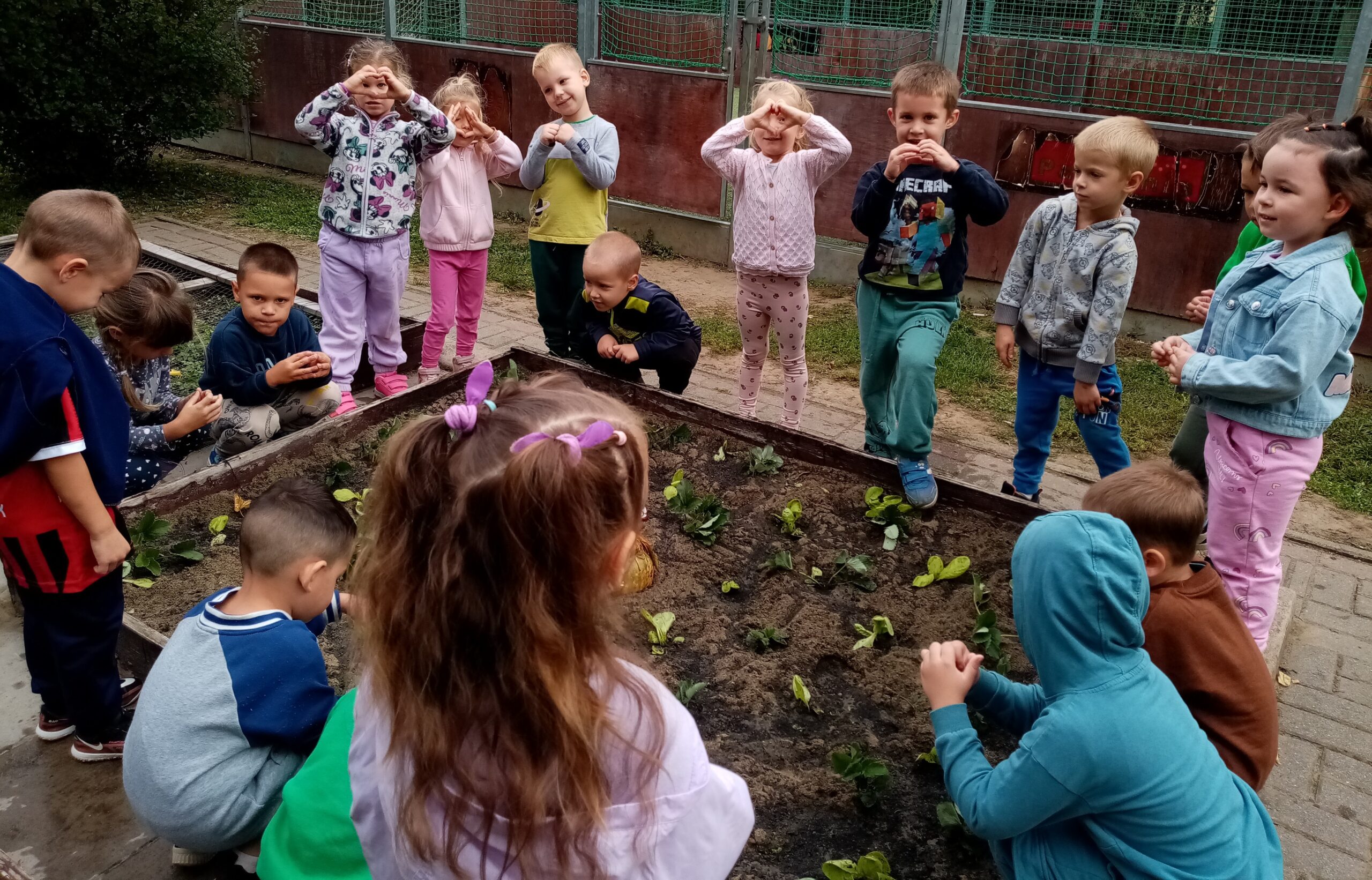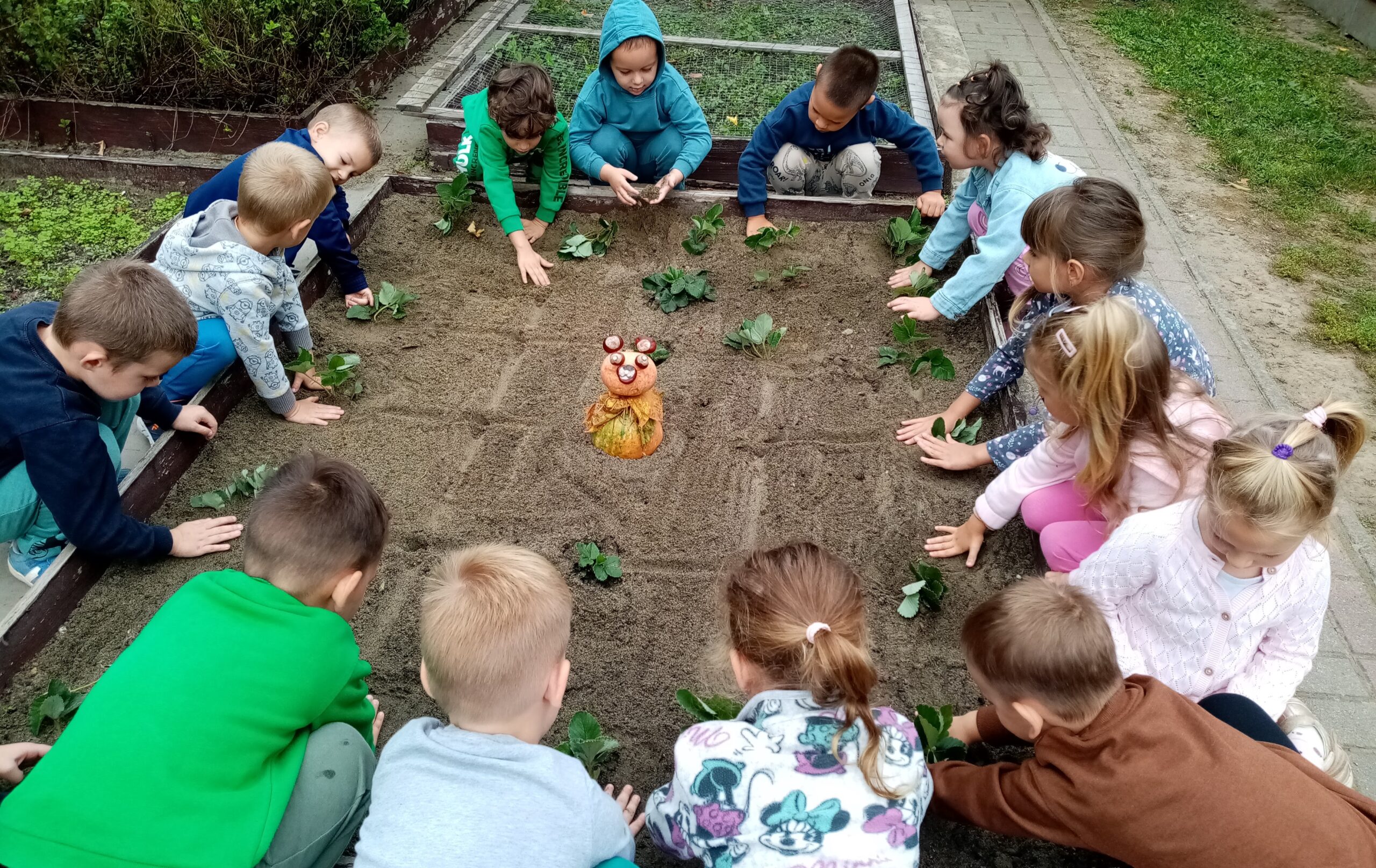A jó időt kihasználva sok időt töltöttünk a szabadban. Eper, saláta palántákat ültettünk, őszi termésbábokat készítettünk, levelest gereblyéztünk. A munka előtt mondókáztunk, verseltünk, énekeltünk, tornáztunk a friss levegőn. Dolgunk befejeztével jóízűen fogyasztottuk el a kerti kiülőnkben tízóraira felkínált gyümölcsöket.