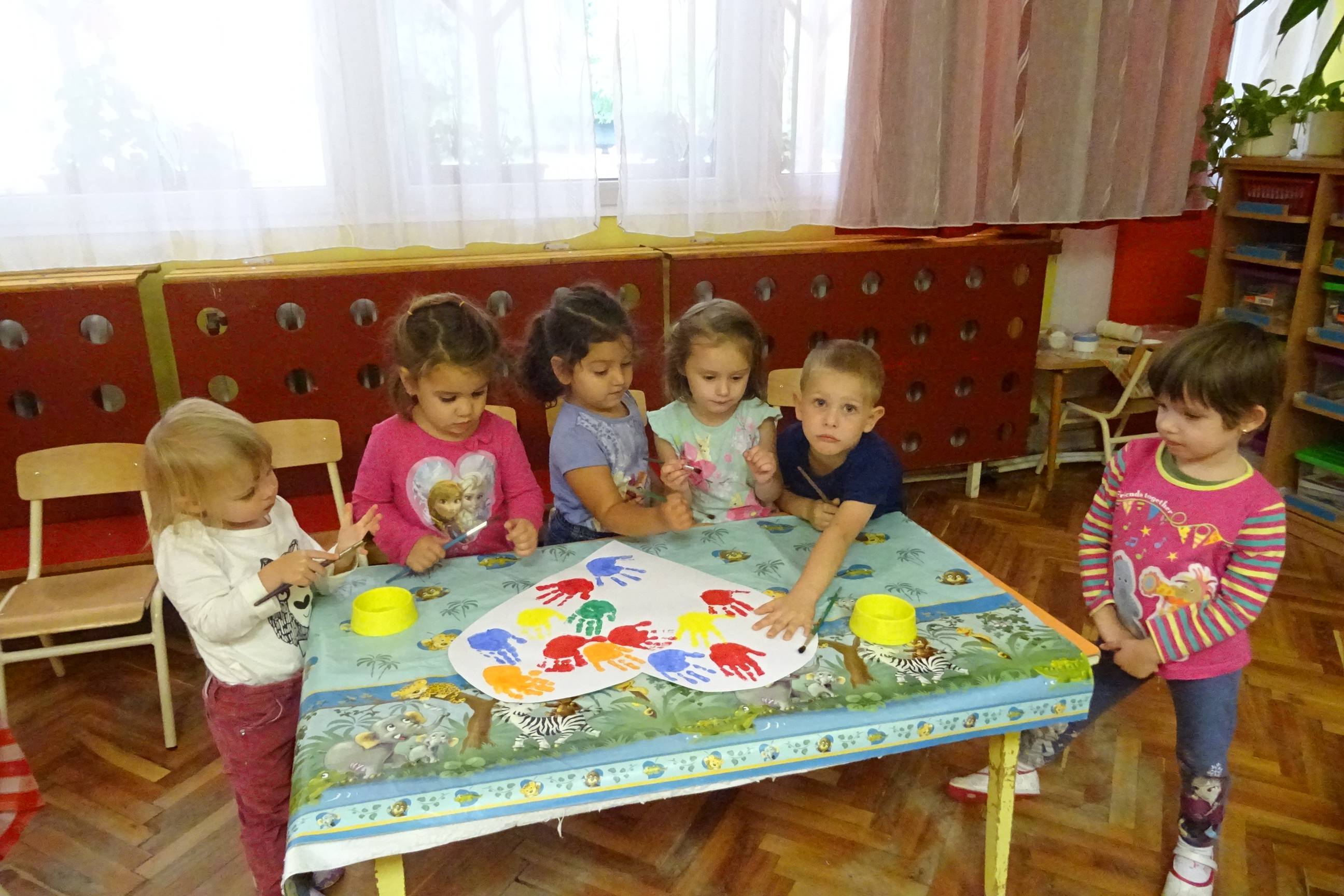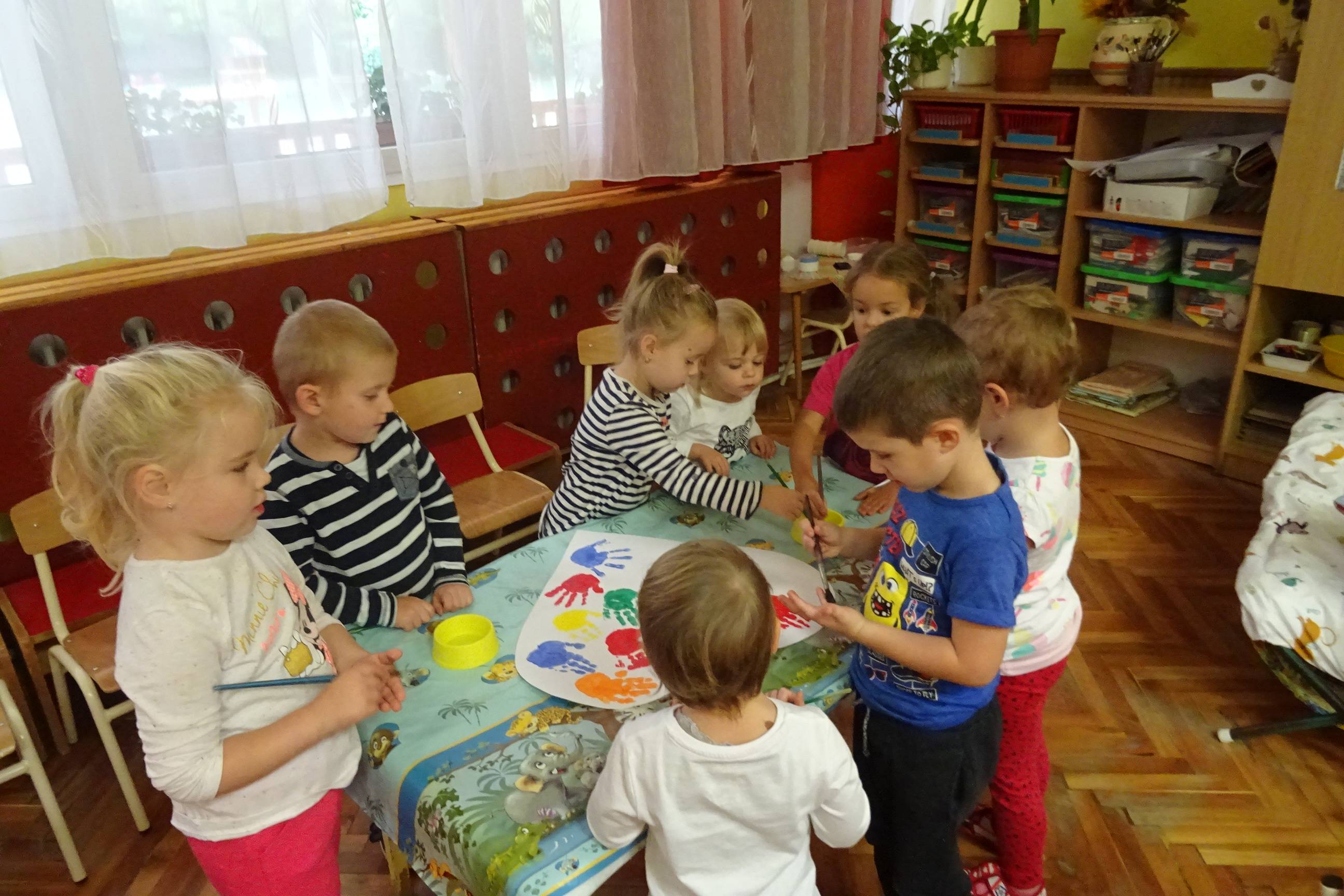 A Boldogságóra szeptemberre vonatkozó témaköre a hála gyakorlása. Nyitnikék Tagóvoda Mókuska csoportja hála kezeket festett. A gyerekek tenyerét a választott színnel befestettük és ezt szív formába lenyomattuk. A tevékenység közben megbeszéltük, hogy kiknek és miért lehetünk hálásak. Ezután egy nagy kört alakítottunk és egy nagy öleléssel fejeztük ki, hogy a csoportban kiknek vagyunk hálásak.