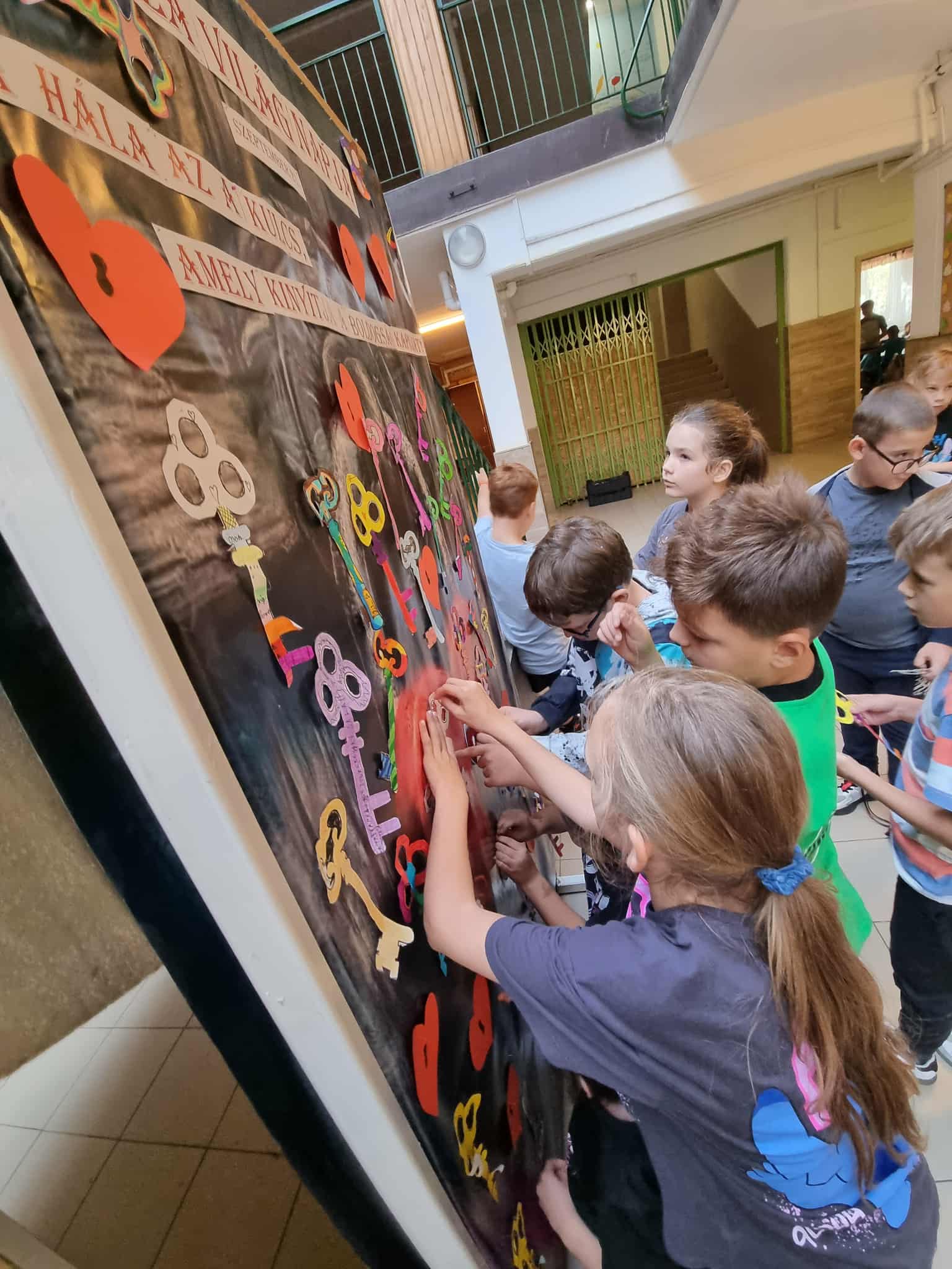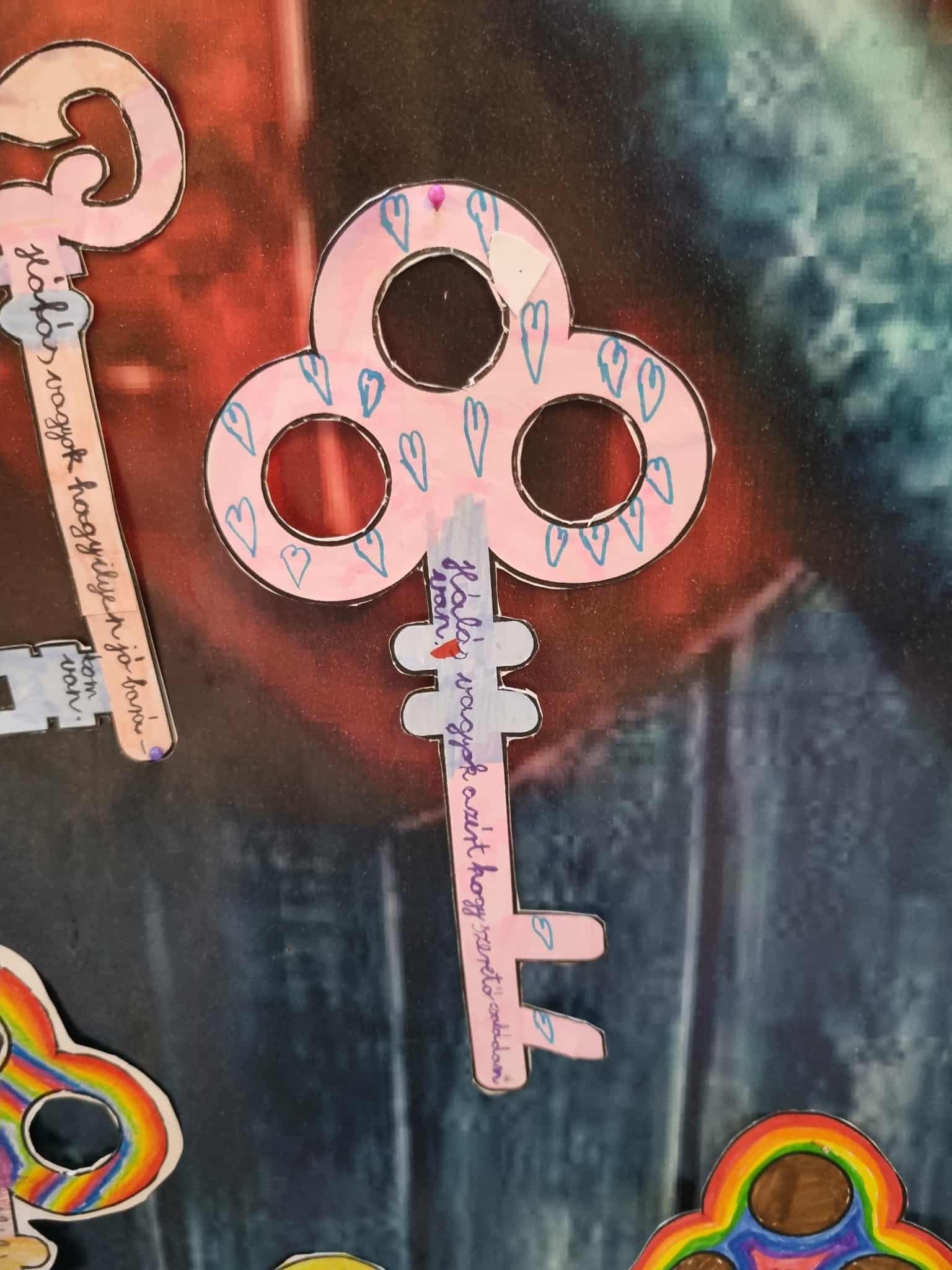 A hála téma feldolgozása, mindig sok – sok gondolatot indít el a gyerekekben. Nem okoz nekik nehézséget az, ha meg kell fogalmazniuk, miért és kinek hálásak. Így volt ez ennek a feladatnak a megoldásakor is. Örömmel kezdték el a saját hálakulcsukat kidíszíteni. Volt, aki nem állt meg egy elkészítésénél, mondván, több dologért is nagyon hálásak.