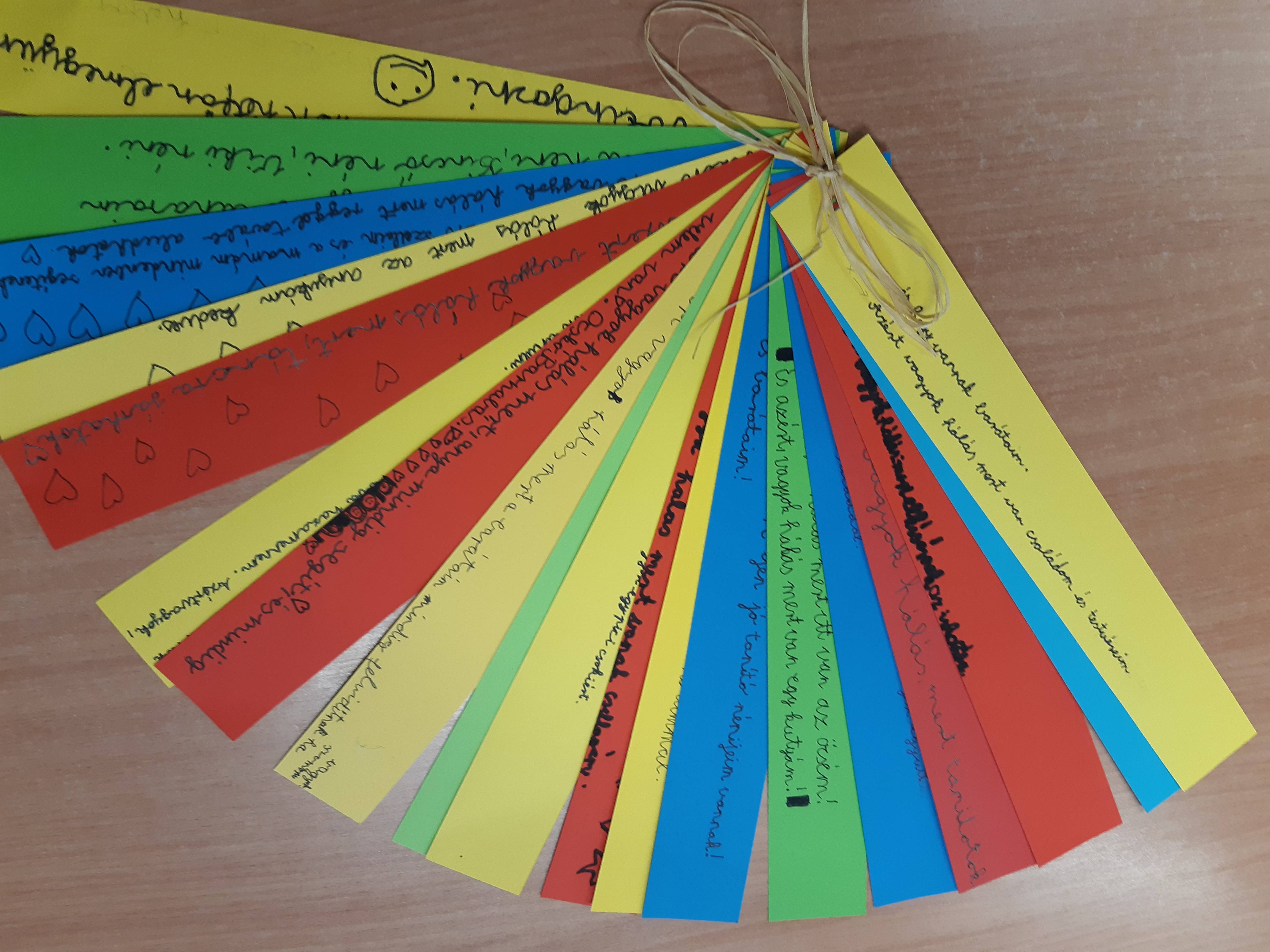 A gyerekek emlékezetek a tavalyi évről erre a témakörre. Nagyon hálásak voltak az eddigi tanításért, és igazán jó ötleteik voltak, hogy a „szürke” hétköznapokban miért lehetünk hálásak. Ezeket a gondolatokat gyűjtöttük össze legyező formában.