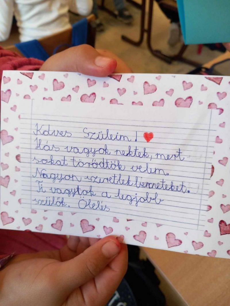 Minden évben szeptemberben készítünk hálalevelet valakinek, akinek hálásak lehetünk. A hónap során elkészült egy hálakör is. Hetente egy-egy alkalommal a gyerekek elmondták és jelölték, hogy kinek, miért hálásak.