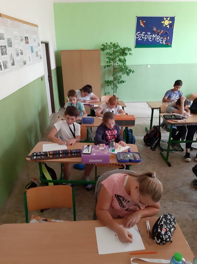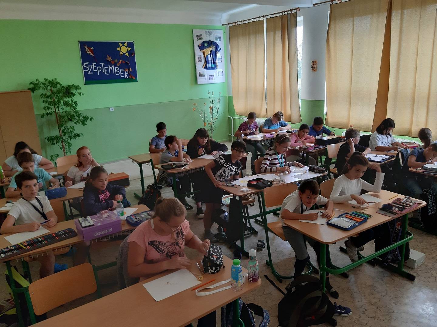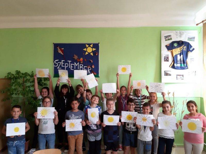 Az ötödikesek az órát a „Kinek lehetünk hálásak és miért“ irányított beszélgetésel kezdték. Utána napocskákat rajzoltak, amelyek sugaraiba beleírták, mi mindenért éreznek hálát.
