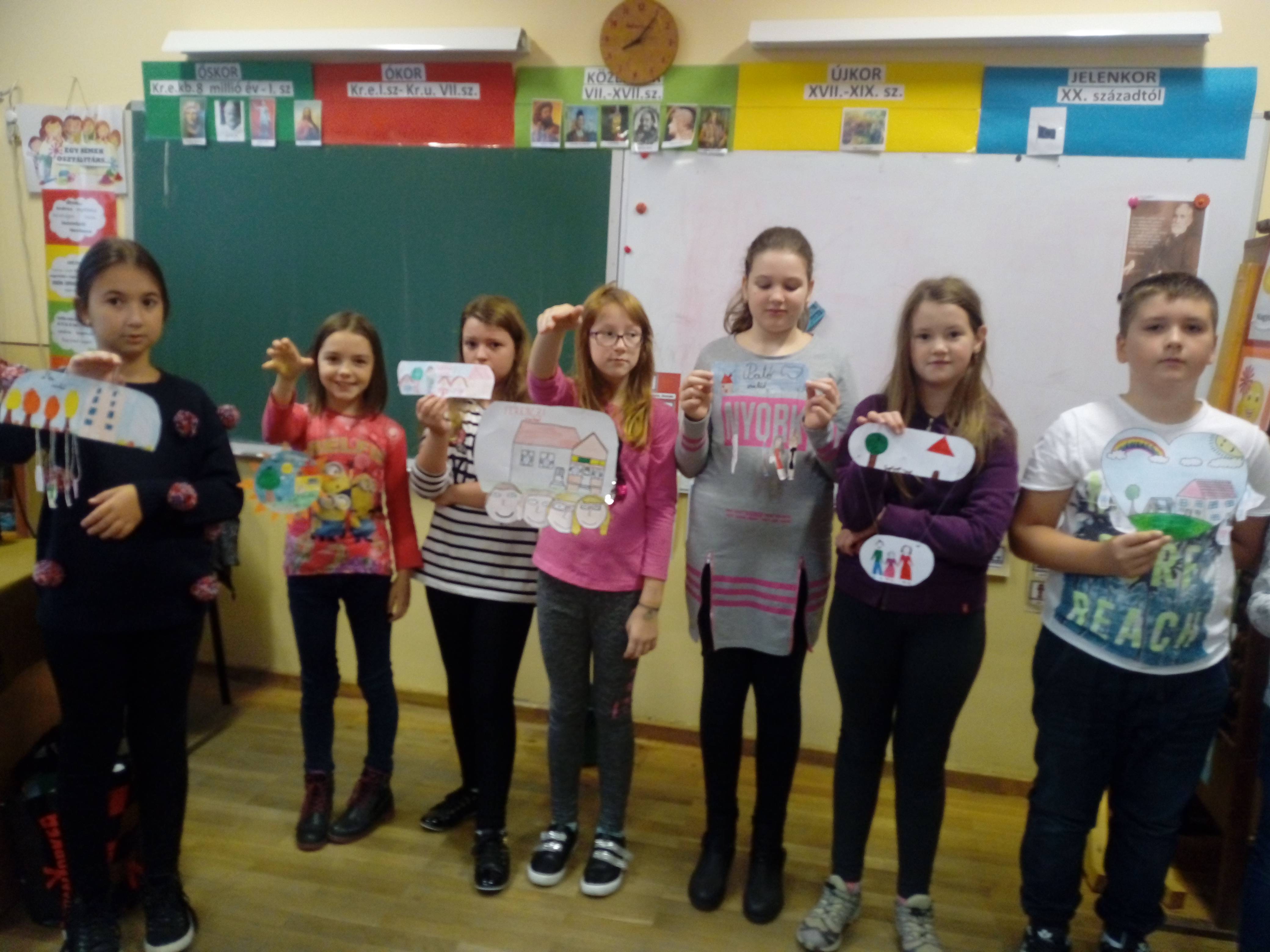 A háláról nekünk elsősorban a családunk jutott eszünkbe. Hálásak vagyunk nekik a sok szeretetért, törődésért, támogatásért, vigasztalásért, a sok-sok élményért, együtt eltöltött szeretetteljes időért. Viszonzásul egy-egy ajtódíszt készítettünk, amely ábrázolja a közös pillanatainkat is.