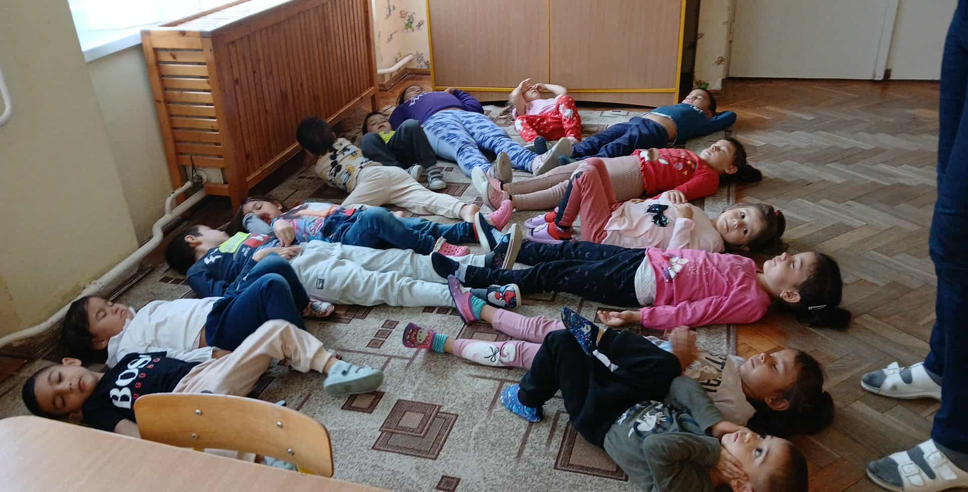 Szeptemberi Boldogságóránk témáját beszélgetőkörrel indítottuk, melynek során megbeszéltük, mit is jelent a hála fogalma, kinek vagy miért lehetünk hálásak. Hogy könnyebben megértsék ezt a fogalmat, inkább azt fogalmaztuk meg, hogy ki, vagy mi szerez nekünk örömet. A nagyobbak már jobban ráéreztek a hála jelentésére (hálás vagyok, mert anyukám szeret, örülök, hogy testvérem születik, hogy játszhatok a barátommal …) Témához illő verset is tanultunk. (Németh Andrea:”Hála vers”.) Ez után felelevenítettük nyári élményeinket, amikor is kirándultunk a bojti Nagy rétre és a tóhoz. Érzékeltetve ezzel, hogy hálásak lehetünk azért, hogy egy kellemes, szép napot tölthettünk együtt a természetben. Relaxációként szőnyegen fekve, behunyt szemmel hallgattuk meg Bagdi Bella: “Szép nap” című dalát, közben újra éltük a tóparti napozást, a madarak csicsergését, a természet hangjait.
