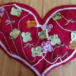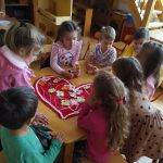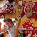 A Hófehérke Óvoda Vackor csoportos gyerekeivel közösen egy szív alakú ,,Hálapárnát,, készítettünk különböző technikákat alkalmazva ( vágás,rajzolás,diszítés, dekorálás). Egy nagy piros filc anyagból piros szívet vágtam ki, a gyerekek kis filc virágokra rajzolták meg saját arcképüket mindenki a saját elképzelése szerint,majd elhelyezték a szívre és gomb varrás technikáját eljátítva rögzítettük a szívhez. Csipkével, gyöngyökkel,szallagokkal díszítettük a párnánkat. Közben megfogalmazta minden gyerek háláját és Bella dalát hallgatva nagyon jókedv ,jó hangulatban töltöttük el a napunkat.