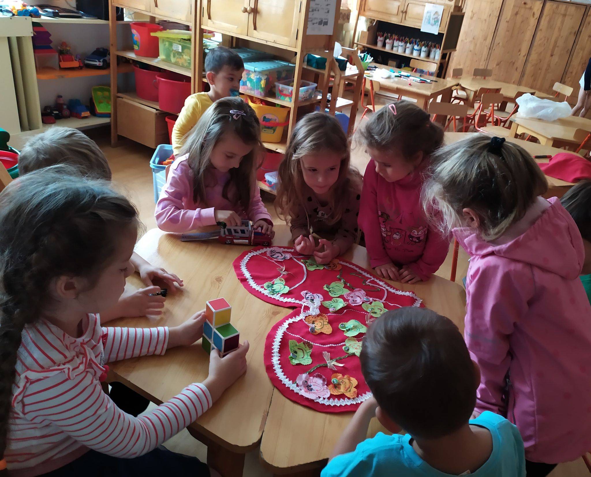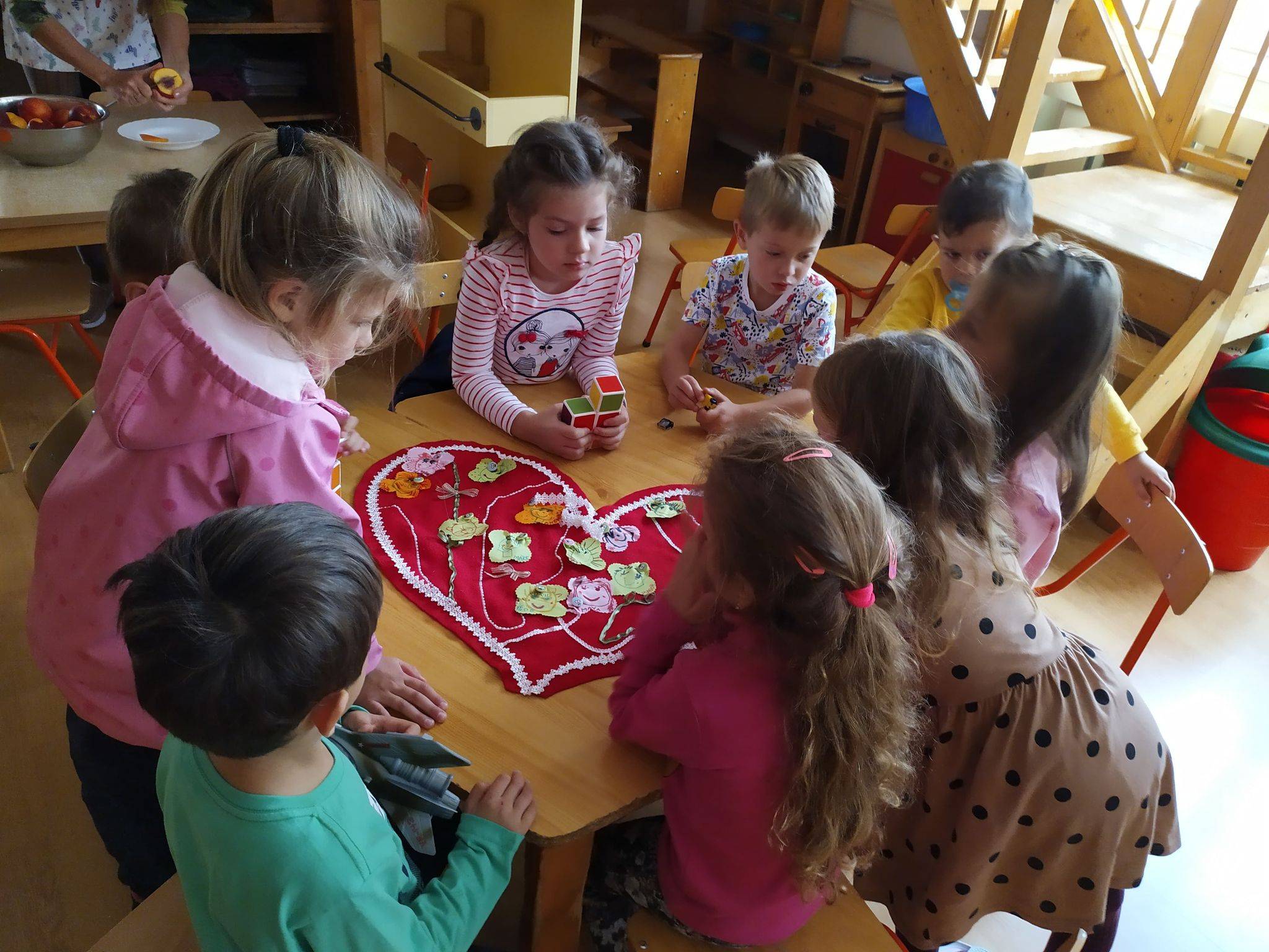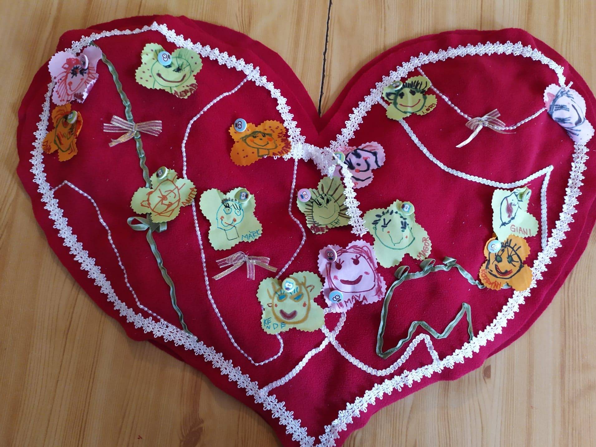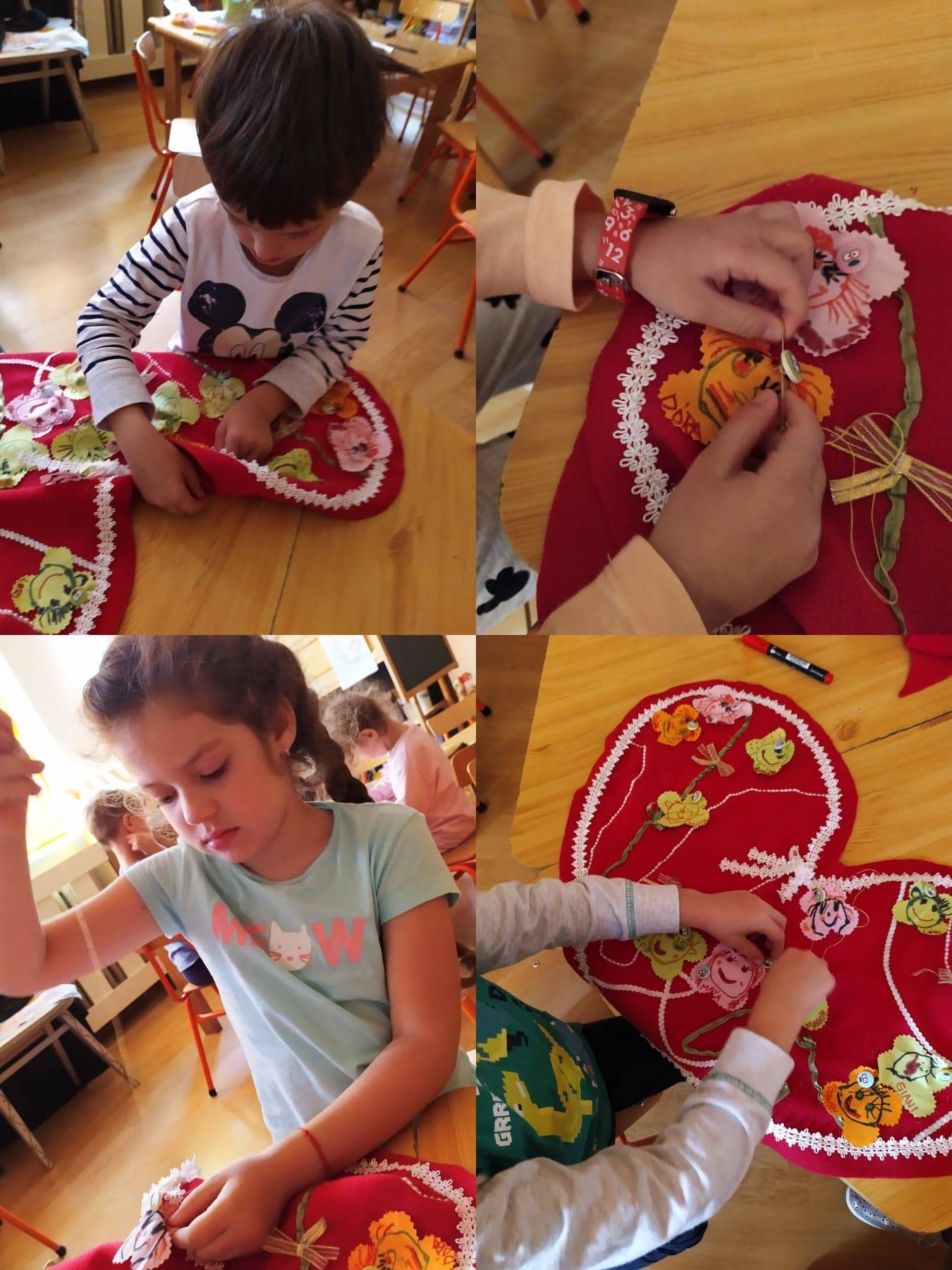 A Hófehérke Óvoda Vackor csoportos gyerekeivel közösen egy szív alakú ,,Hálapárnát,, készítettünk különböző technikákat alkalmazva ( vágás,rajzolás,diszítés, dekorálás). Egy nagy piros filc anyagból piros szívet vágtam ki, a gyerekek kis filc virágokra rajzolták meg saját arcképüket mindenki a saját elképzelése szerint,majd elhelyezték a szívre és gomb varrás technikáját eljátítva rögzítettük a szívhez. Csipkével, gyöngyökkel,szallagokkal díszítettük a párnánkat. Közben megfogalmazta minden gyerek háláját és Bella dalát hallgatva nagyon jókedv ,jó hangulatban töltöttük el a napunkat.