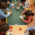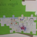 A gyermekek rászínezik a puzzle sablonra amiért hálásak, majd összeillesztjük a puzzledarabokat és egy nagy kirakót készítünk. Igény szerint a vágásnál segítséget nyújtok.