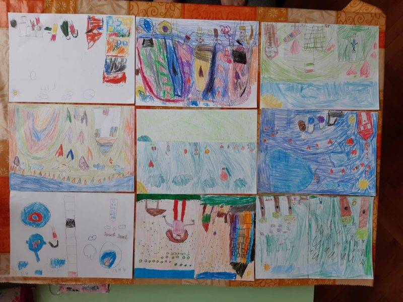 A rajzunk Hálarajz. A nyári pillanatok közül miért vagy hálás? A gyerekek párban dolgoztak, hasonló témát választók dolgoztak együtt. Volt aki a strandolásért, kirándulásért, kutyusért, szivárvány látványáért, vagy a családi együttlétért volt hálás.