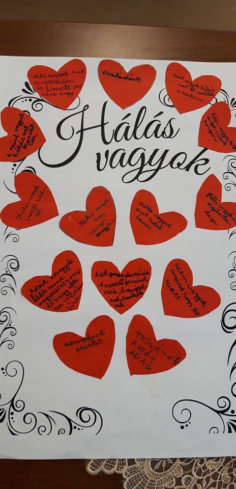 Osztályommal, a 6.a osztály tanulóival nem kellett sokat gondolkodnunk azon, hogy miért is vagyunk hálásak naponta a sorsunknak. Minden embernek van oka a hálára, ha nem is minden ember ugyanazon dologért hálás. Sokan vagyunk, akik már egy jó szóért is hálásak, amit embertársaiktól kapnak egy nehéz nap kezdetén vagy végén. Úgy érzem, ma már egyre kevesebb mosolyt, egyre kevesebb jó szót kapunk egymástól, s adunk egymásnak. Szerintem nem ” nagy” szavakra lenne szükségük az embereknek, csupán egy pici törődésre, odafigyelésre, kedvességre. Tanítványaim leírták, hogy ők miért hálásak, mi fontos számukra a boldogsághoz.