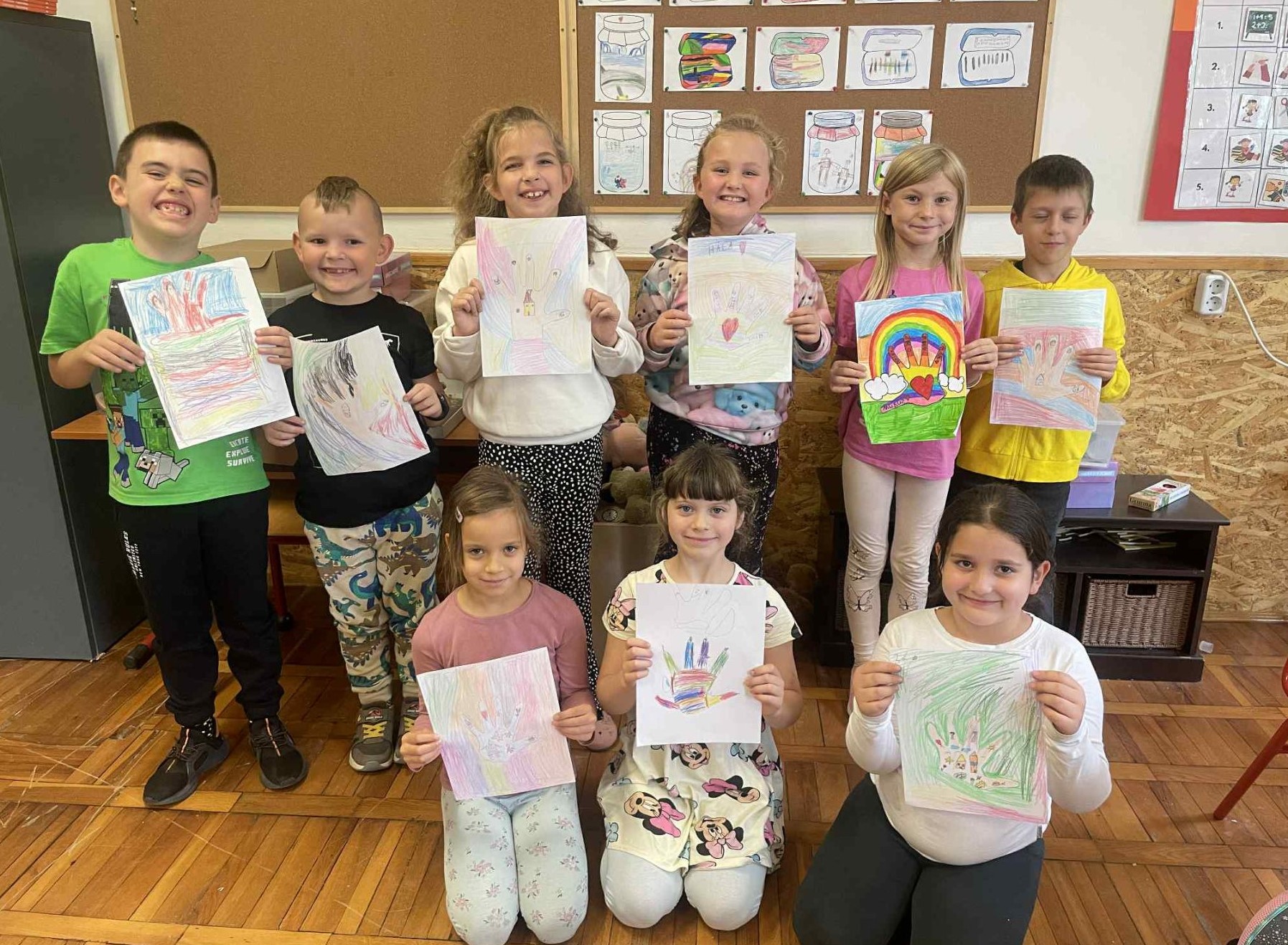 Az órán a gyerekek a hála gyakorlásáról tanultak. Rövid beszélgetés után mindenki megosztotta, miért lehet hálás a mindennapokban, majd a feladat témája a „Hálás kezek” volt: a saját kezüket körberajzolták, és a tenyérbe rajzolták vagy írták, amiért köszönetet éreznek (például család, barát, kedvenc állat). Az elkészült rajzokból közös „Hála-falat” készítettünk, amely színesen emlékeztet arra, mennyi apró dologért lehetünk hálásak.