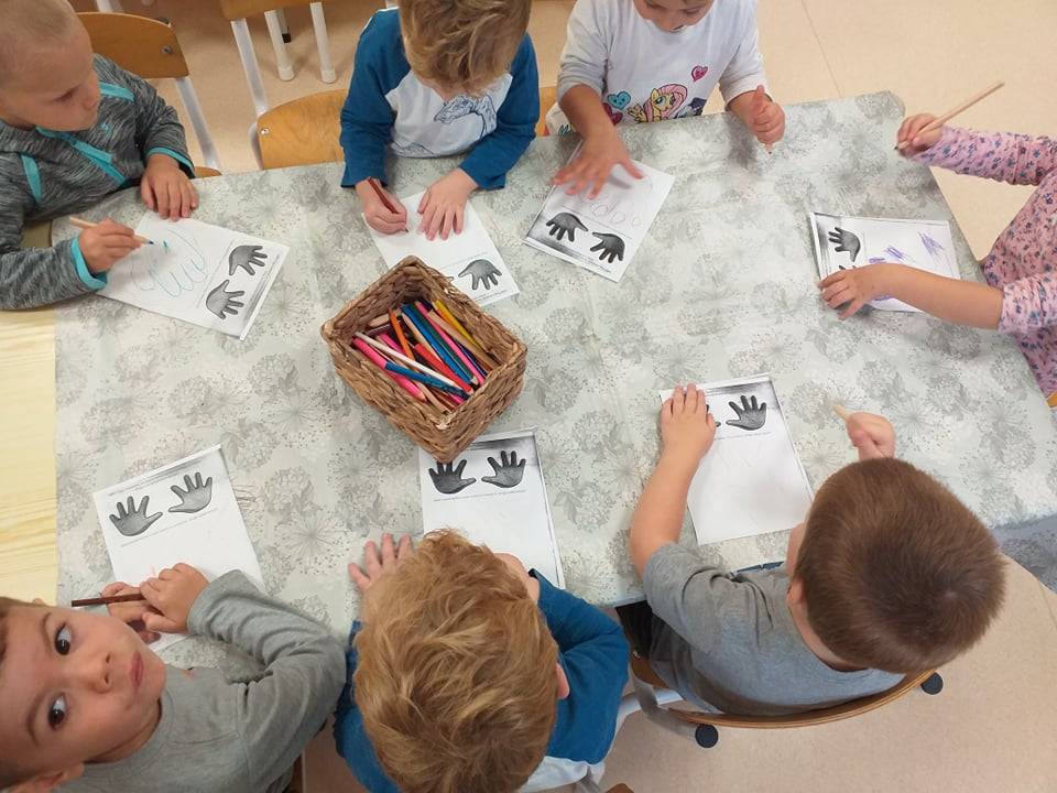 Első boldogságóra foglalkozásunkra szeptember utolsó hetében került sor a kiscsoportosok befogadása miatt. Relaxációs gyakorlattal kezdtük “Égig érő fa vagyok, megnövök mint a nagyok…”, majd a Hálafa című mesével folytattuk boldogságóránkat. A mese nagyon tetszett a gyerekeknek, életkorukhoz mérten megértették a mesét. A munkafüzetből kimásoltuk a “Hála kezek” feladatot, és a gyerekek szívesen , és örömmel készítették a kis kezeiket.