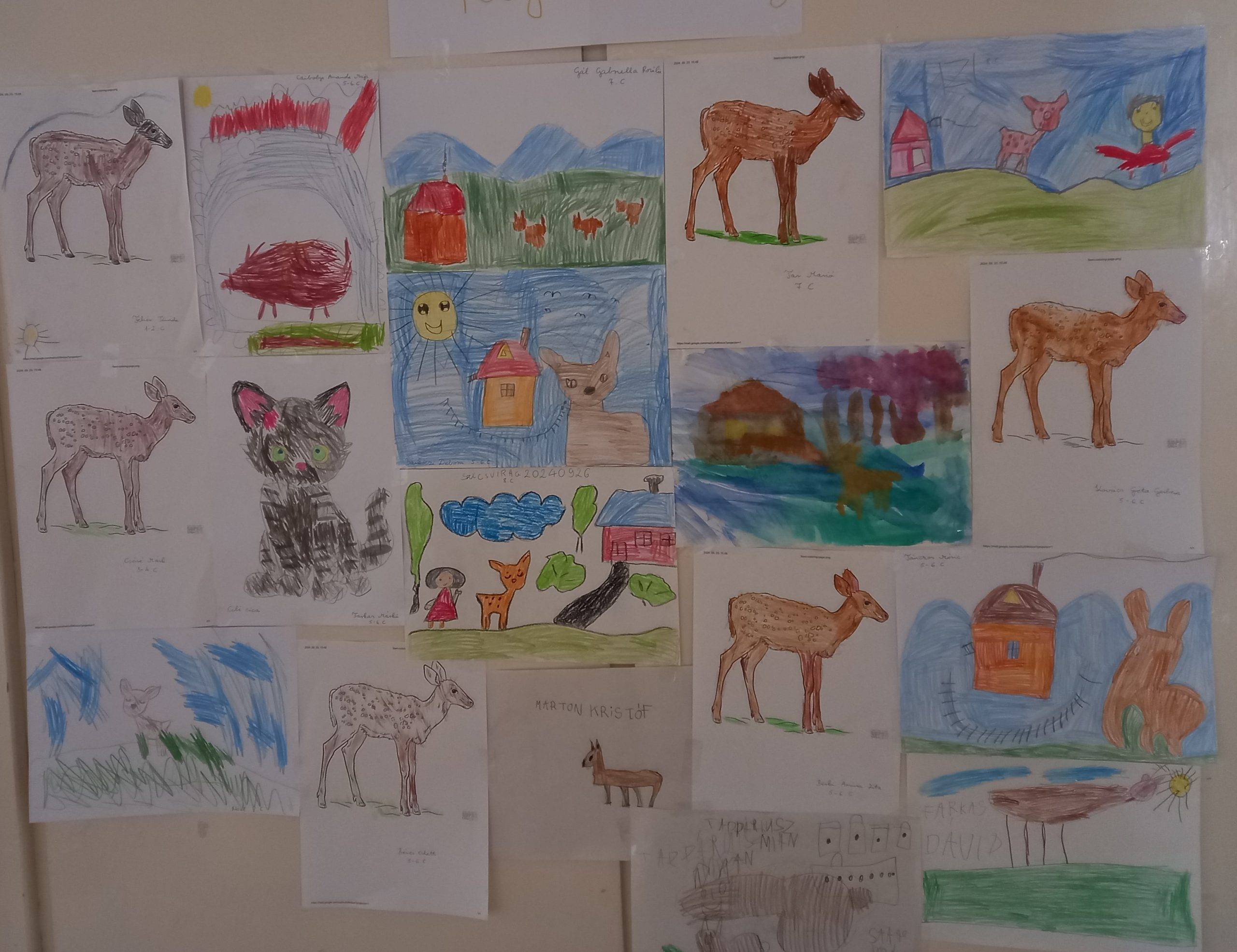 Majd egy csodás történetet találtunk, ami a Mátraalján, erdőszélen történik. Nem eredendően népmese, de az Öreg néne őzikéje története nagymamája visszavitt bennünket a hála gondolatához is. Ez a történet az Öregek Világnapi nagymamák köszöntéséhez is felhasználjuk majd. De addig is, a mesehallgatás után páros rajzolás, következett. Aki a rajzolásban volt ügyesebb az rajzolt, majd színezte az, aki színezni szeret. A közös munkákból kis kiállítás is született