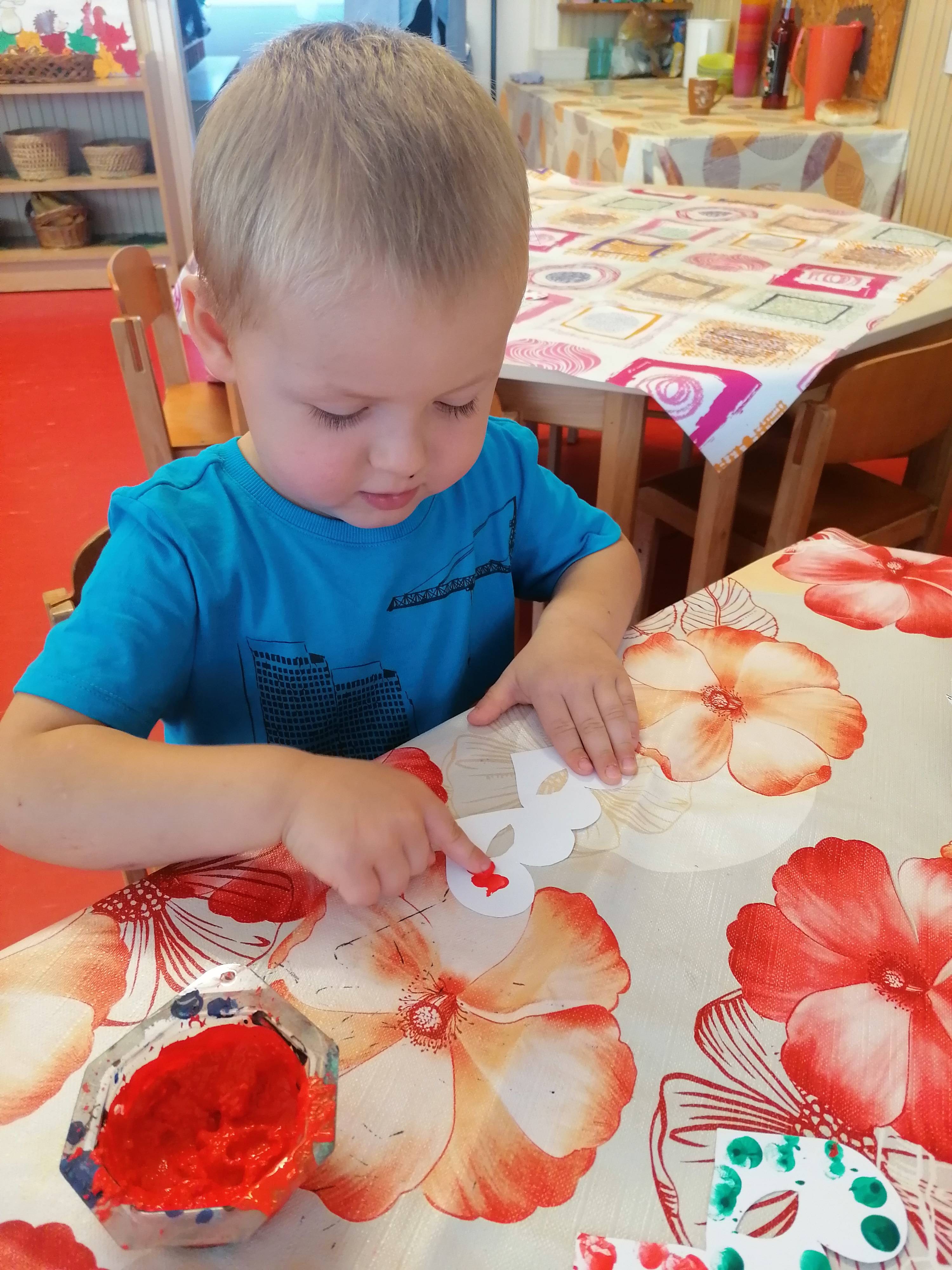 A gyermekek ujjnyomdázással mintázhatták meg saját álarcaikat.