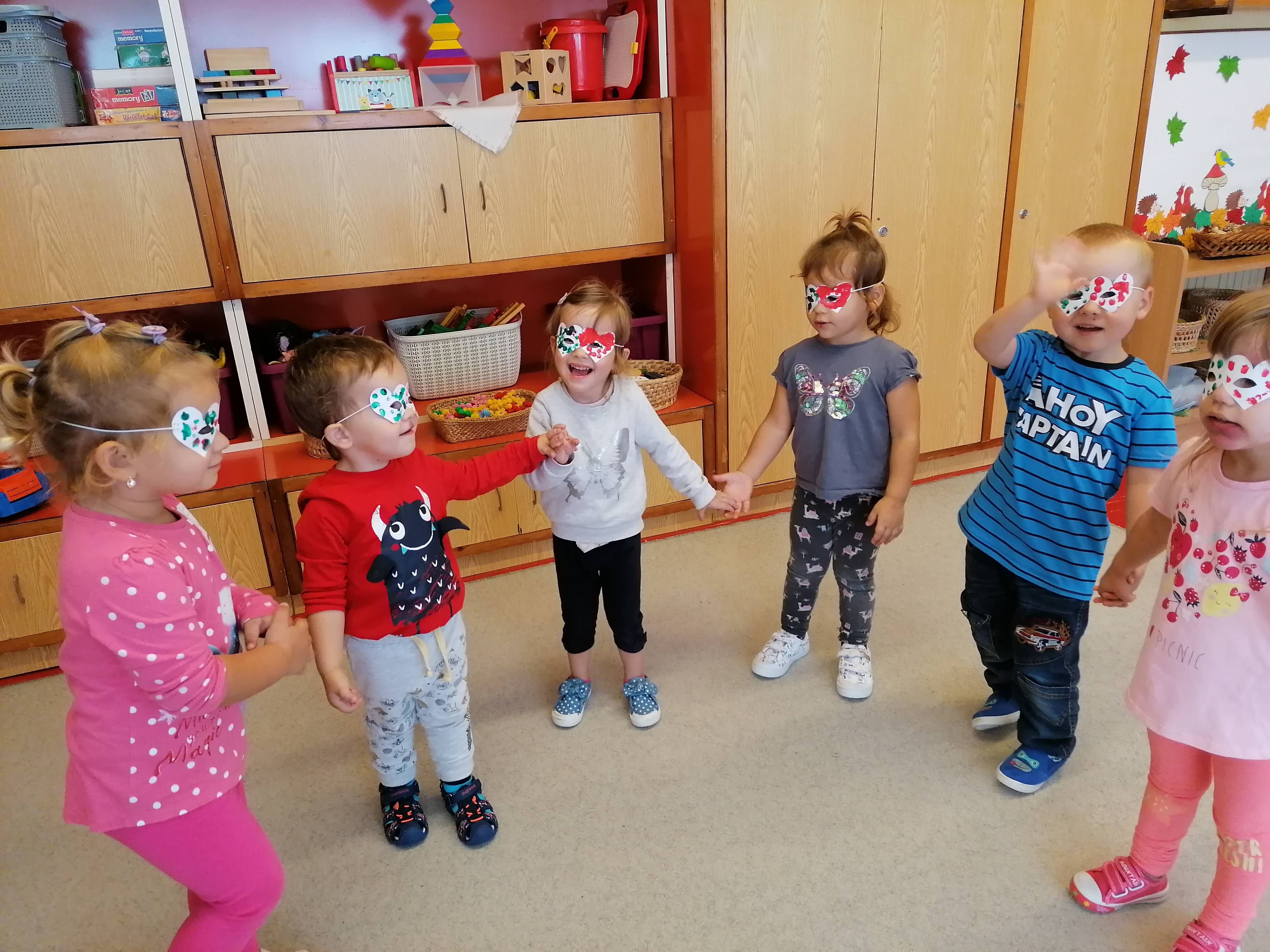 Miután elkészültek az álarcok, mindenki felvette az általa készítettet, majd együtt elmondtuk a korábban tanult „boldogságmondókát.”