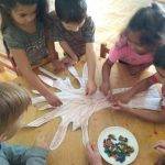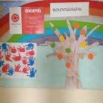 A mesehallgatás gyermekeink egyik kedvenc tevékenysége, ezért a Hála témakör feldolgozását is, A Hálafa történetével indítottuk. Figyelmesek, érdeklődőek voltak, a nagyobbak közül szinte mindenkinek volt egy-egy gondolata, amit tanulságként elmondott a többieknek. Mivel mindenki részt kívánt venni a hálakezek készítésében, ezért kicsit egyszerűbben készítettük el. A kék és piros színből választhattak a gyerekek és a tenyérnyomatuk lefestése után, beszélgettünk arról, kinek, miért lehetünk hálásak. A Hála fánkra, pedig őszi hálalevelekkel kerültek köszönetünk jeléül. A mozgás sem maradhatott el a mai foglalkozásról, a fa mondókáját a kicsik is szívesen mondták és mutatták velünk. Kellemes érzéseket váltott ki a gyerekekből az óra hangulata