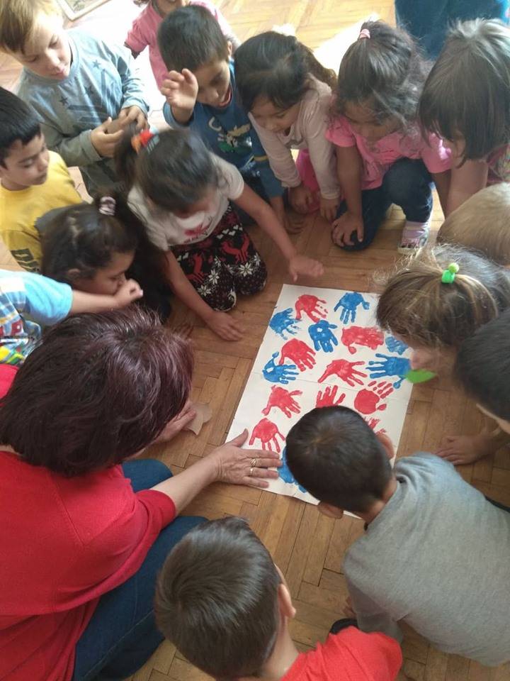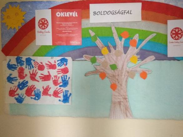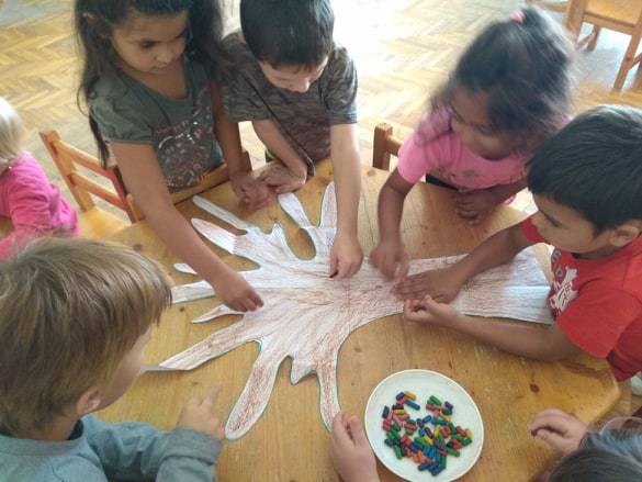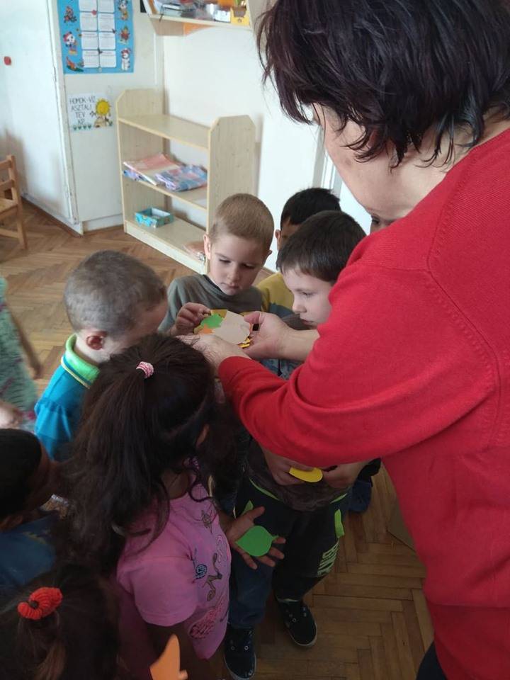 A mesehallgatás gyermekeink egyik kedvenc tevékenysége, ezért a Hála témakör feldolgozását is, A Hálafa történetével indítottuk. Figyelmesek, érdeklődőek voltak, a nagyobbak közül szinte mindenkinek volt egy-egy gondolata, amit tanulságként elmondott a többieknek. Mivel mindenki részt kívánt venni a hálakezek készítésében, ezért kicsit egyszerűbben készítettük el. A kék és piros színből választhattak a gyerekek és a tenyérnyomatuk lefestése után, beszélgettünk arról, kinek, miért lehetünk hálásak. A Hála fánkra, pedig őszi hálalevelekkel kerültek köszönetünk jeléül. A mozgás sem maradhatott el a mai foglalkozásról, a fa mondókáját a kicsik is szívesen mondták és mutatták velünk. Kellemes érzéseket váltott ki a gyerekekből az óra hangulata