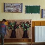 Hálafát díszítettünk színes falevelekkel, melyekre ráírtuk, mi mindenért is lehetünk hálásak. Elkészítettük a Reggel, délben, este Plakátot, és az Ablak a világra montázst. A táncteremben kialakítottuk a Morcos mező, és a Szív sziget helyét, megtervezve a Hála-hidunkat is. Az Önbizalom helyhez tartozó Rajz-kaland ötlete nagyon tetszett a gyerekeknek, örömmel vetették papírra elképzeléseiket. Beszélgettünk a Hála családról, és sok nevetéssel megvalósítottuk az Együttműködés színes-takaró fordítást is. A Párban rajzolás érdekes szituációkat hozott, melyekre jól reagáltak. Hálaerősség mondókánkat szinte naponta mondjuk, Hálabefőttünk készítése még folyamatban van. Vidám reggeli köszöntésekkel igyekszünk pozitívan indítani napunkat, Kedvesség erősségmondókánkat még tanuljuk. A Pozitív árulkodás pedig még előttünk áll, de nagyon izgalmas lehetőségnek hangzik.