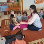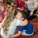 Először nehezen tudták megfogalmazni a gondolataikat, így jól jött az Angyalkázás elnevezésű játék. Körbe ültünk és egy kis kosárba a gyerekek jelét tettem. Mindenki húzott egyet, megmondta a jel tulajdonosának nevét és ki egy öleléssel, ki jó szóval, vagy egy nagy puszival hálálta meg a társának, hogy milyen kedves és figyelmes volt aznap vele. Sokszor az arcukról sugárzó mosoly bizonyította a hála érzésének valódiságát, tényleg jó érzés volt számukra jót tenni. Irányított kérdésekkel meséltek a gyerekek arról, hogy egymásak, a szüleiknek miért lehetnek hálásak, mit köszönhetnek meg nekik. Volt, aki a finom falatokért, egy kedves játékért hálás, de olyan gyerek is akadt, aki hálás egy ölelésért is.