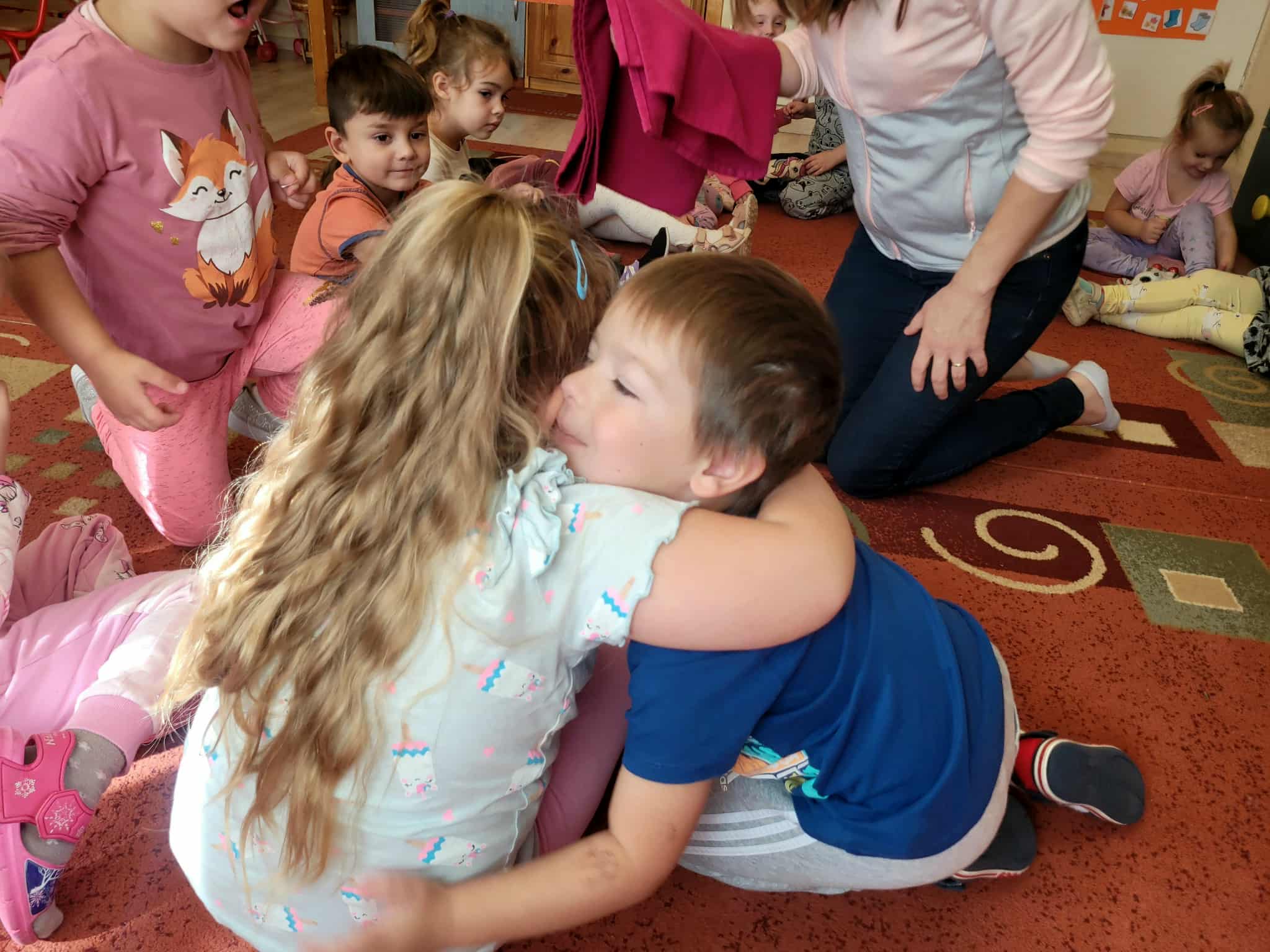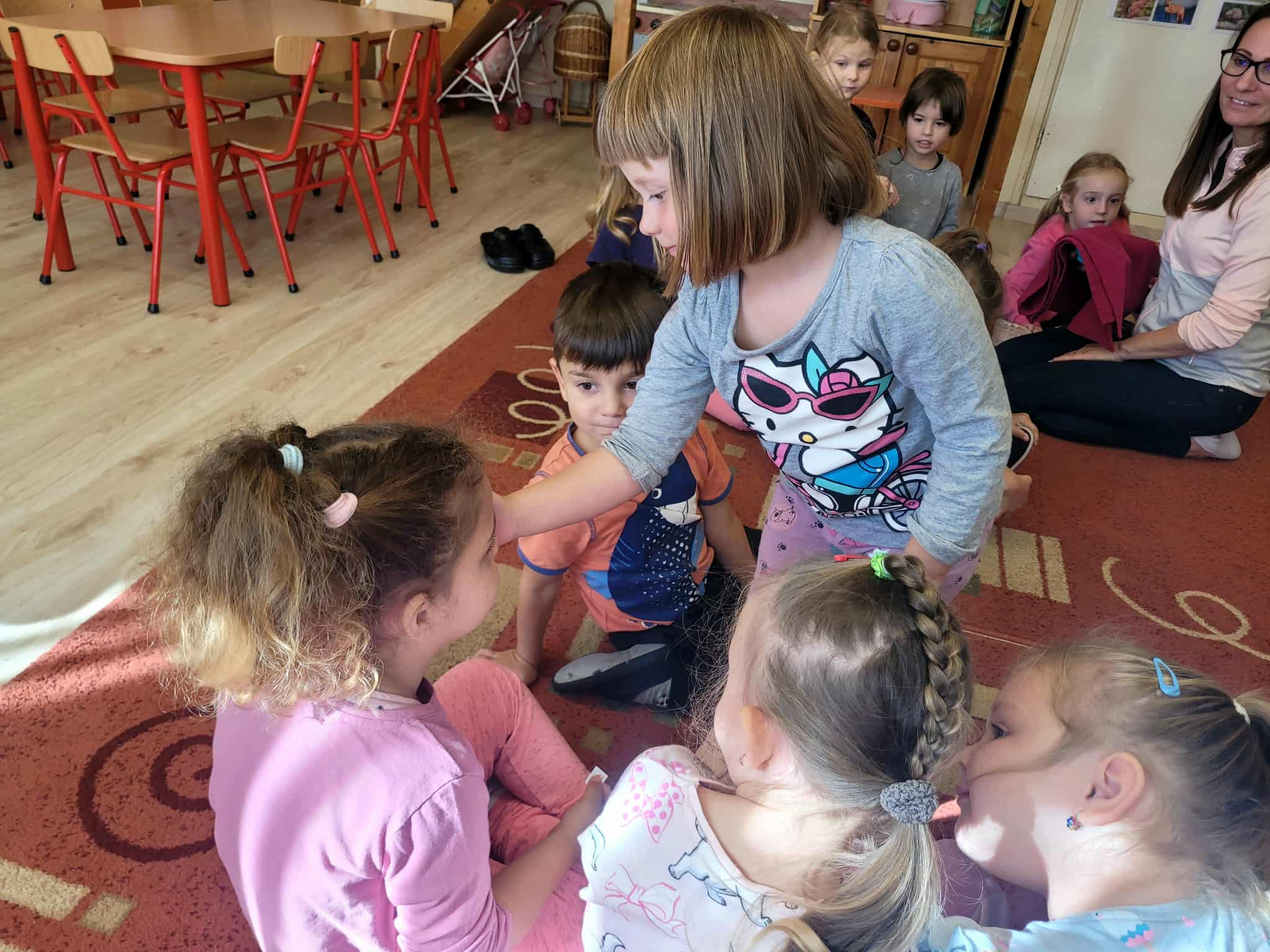 Először nehezen tudták megfogalmazni a gondolataikat, így jól jött az Angyalkázás elnevezésű játék. Körbe ültünk és egy kis kosárba a gyerekek jelét tettem. Mindenki húzott egyet, megmondta a jel tulajdonosának nevét és ki egy öleléssel, ki jó szóval, vagy egy nagy puszival hálálta meg a társának, hogy milyen kedves és figyelmes volt aznap vele. Sokszor az arcukról sugárzó mosoly bizonyította a hála érzésének valódiságát, tényleg jó érzés volt számukra jót tenni. Irányított kérdésekkel meséltek a gyerekek arról, hogy egymásak, a szüleiknek miért lehetnek hálásak, mit köszönhetnek meg nekik. Volt, aki a finom falatokért, egy kedves játékért hálás, de olyan gyerek is akadt, aki hálás egy ölelésért is.