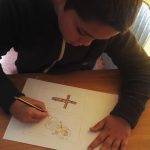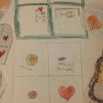 Az óra utolsó felében az alkotáson volt a hangsúly. Előre elkészítettem nekik az ablakkeretet, majd mindenkinek egy kis lapocskát osztva neki láttak a rajzolásnak. Nagyon érdekes volt szemlélni, ahogyan próbálták az érzelmeket, gesztusokat is kifejezni a rajzukban.