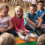 Csupaszív ❤, aki a csoport Boldog Ovis jelképe, kabalája, ismét előkerült, és megismerkedett mindenkivel újra, hiszen nem sok gyermek emlékezett a nevére. Ezt követően a Hálafa történetét olvastam el, melyhez olyan őszi leveleket is elővettünk, mint a történetben szereplők. Megbeszéltük, hogy mi történt a fával, miért volt szomorú, és mit tettek az állatok, hogy jobb kedve legyen. Ezáltal pedig hálás volt nekik. A gyerekek is elmondhatták, hogy ők miért hálásak. Akinél egy szép piros falevél volt, elmondta, majd továbbadta a társának. Szívmelengető mondatokat hallhattunk, mint például: ” Azért vagyok hálás, mert sok barátom van itt az oviban,…mert szeret a családom,…mert a Csupaszív itt van nekünk….