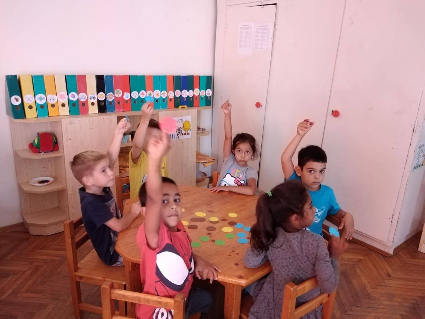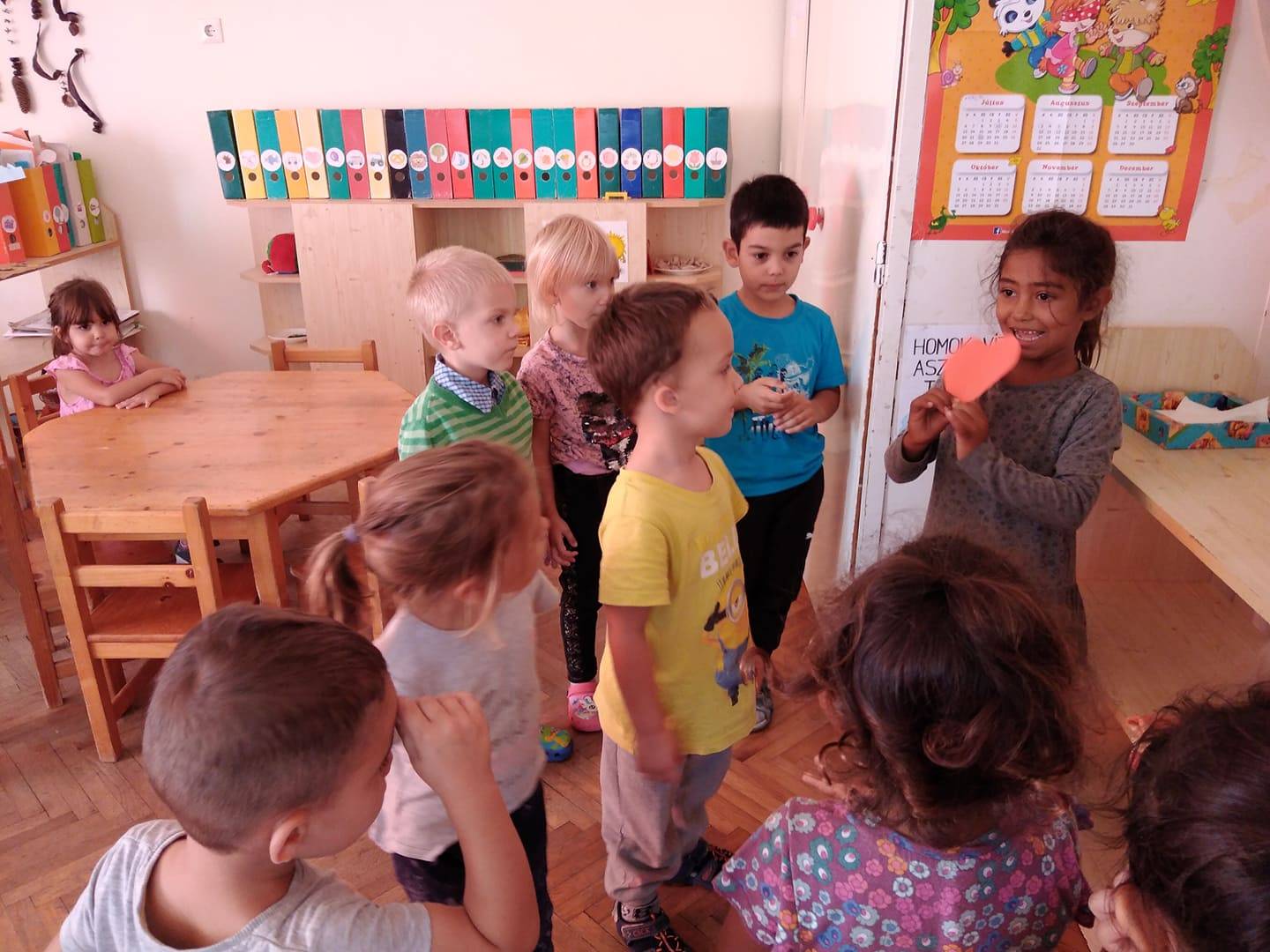 Bevezető beszélgetéssel kezdtük a foglalkozást, elmondtuk a gyerekeknek, hogy milyen játékokkal, feladatokkal fogjuk szebbé tenni a napunkat.