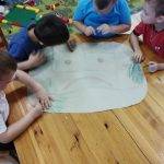 Közösen „Szív szigetet” színeztek , vágtak a lányok. A fiúk „Morcos mezőt” készítettek. Utána hidat építettek közé. A hídon úgy lehetett átjutni, hogy elmondták: