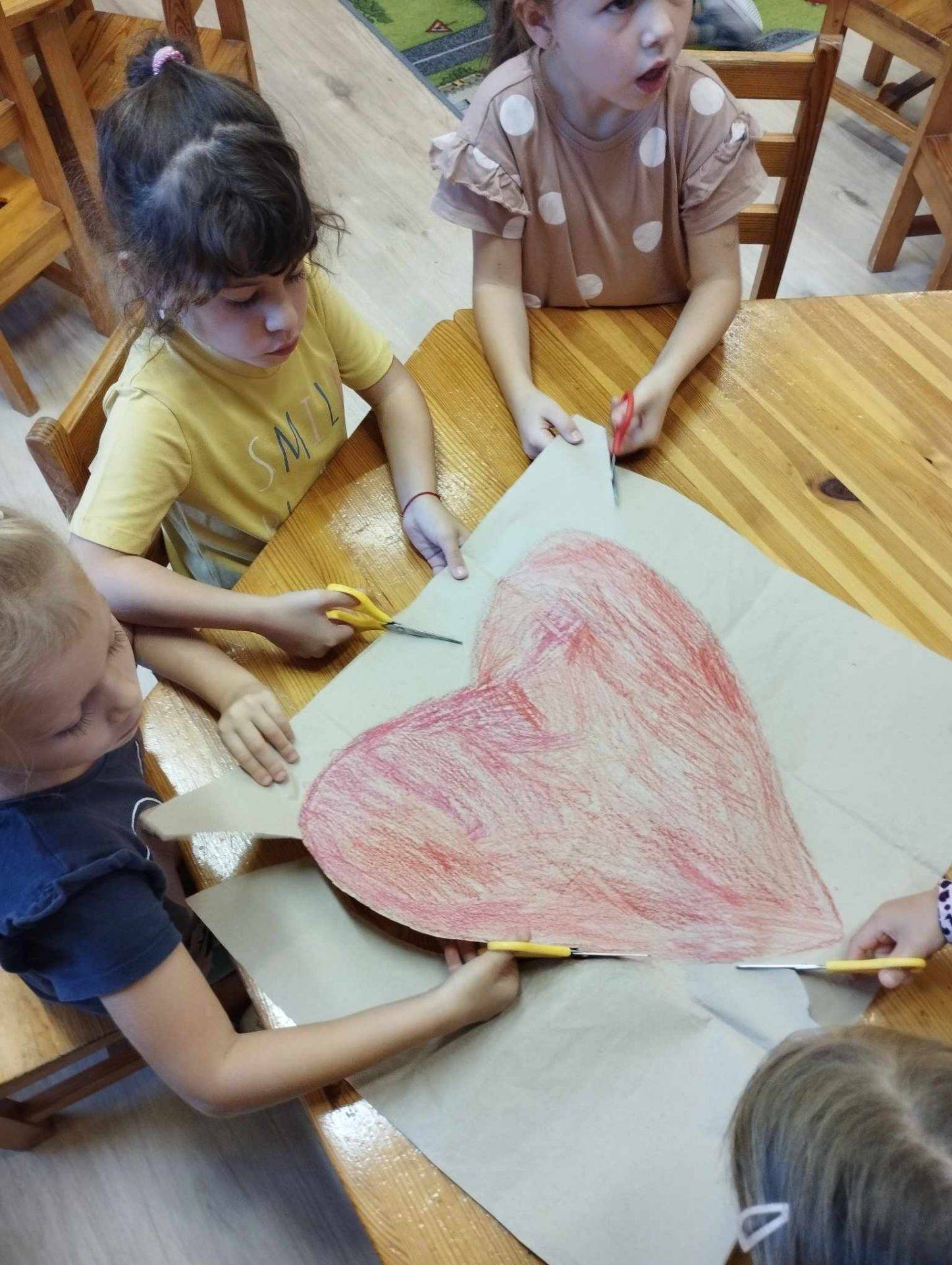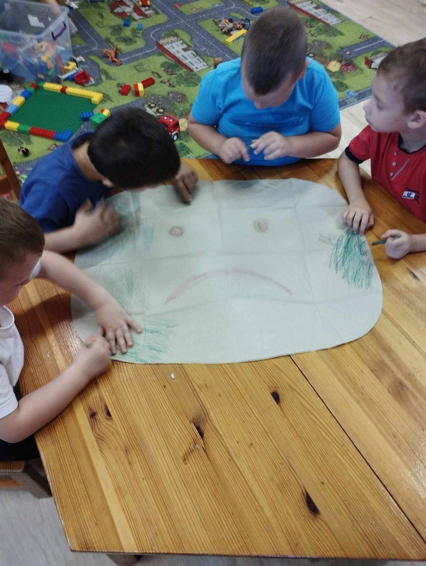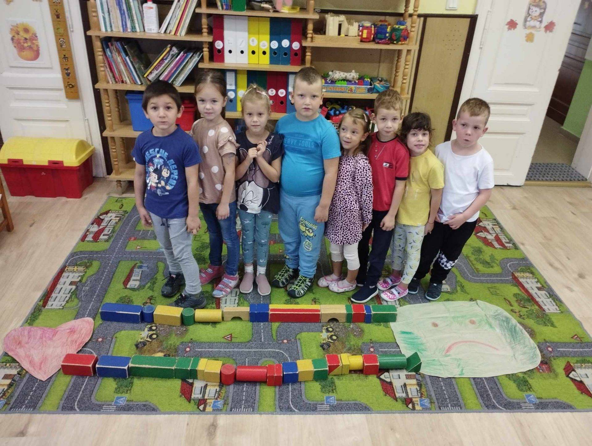 Közösen „Szív szigetet” színeztek , vágtak a lányok. A fiúk „Morcos mezőt” készítettek. Utána hidat építettek közé. A hídon úgy lehetett átjutni, hogy elmondták: