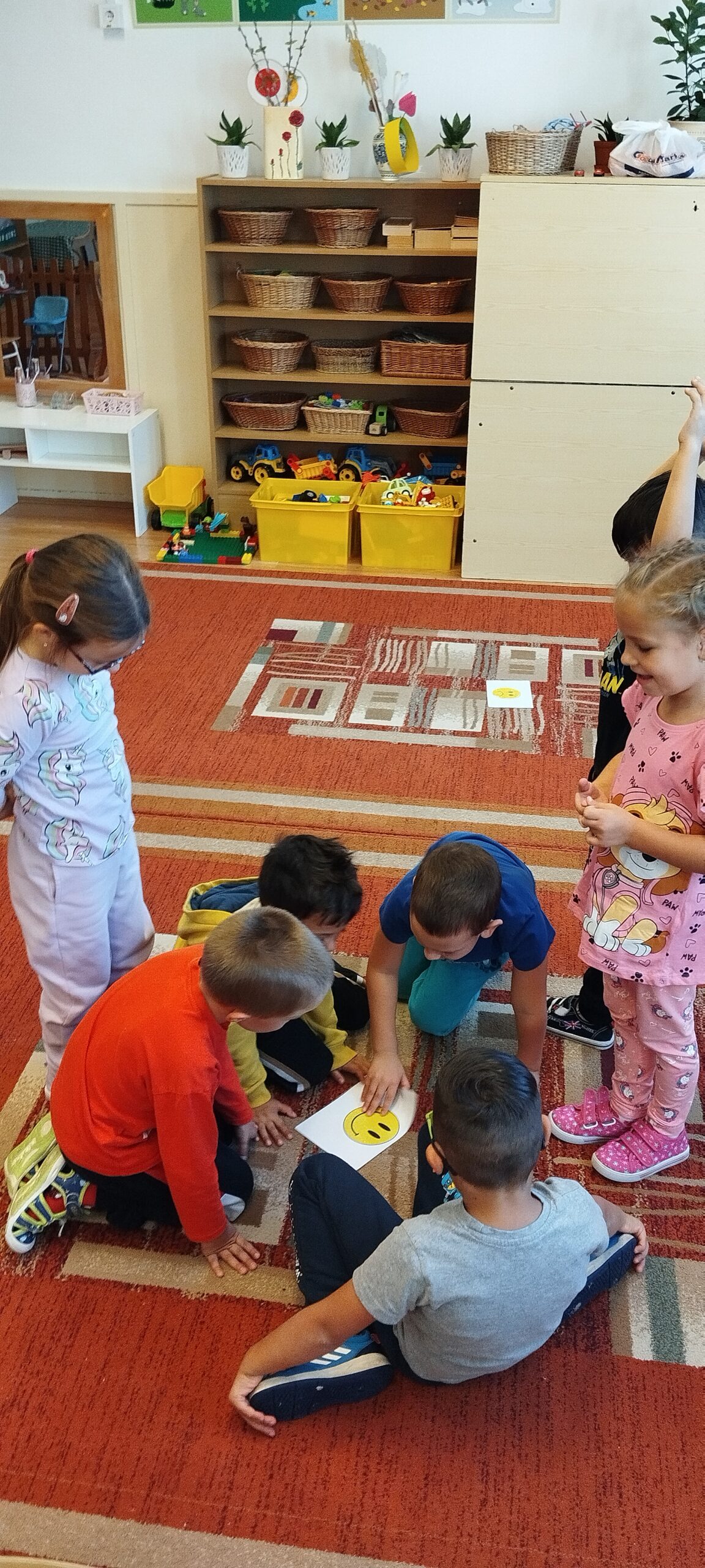 A foglalkozás legvégén kértem őket, hogy válasszanak a mosolygós és szomorú arc közül, és álljanak oda, ami őket abban a pillanatban jellemzi. Egy kivétellel mindenki a mosolygóshoz állt. Az az egy gyermek azt mondta, hogy azért szomorú, mert nincsenek barátai. Erre a többiek magukhoz hívták. Nagyon megható volt.
