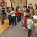 A héten a hálát gyakoroltuk a gyerekkel, ismerkedtünk magával a fogalommal, amihez segítségül Bagoly Benő plüss figurát hívtam. Ez a Benőke egy nagyon kíváncsi és csupa szív kis bagoly. Egyből meg is kedvelték a gyerekek. Megbeszéltük hogy a hála egyfajta köszönet fajta, amit pénzért nem lehet megvenni és oda adni. Ezt csak szeretettel tudjuk tenni és önzetlenül adni. De hálásak lehetünk valami vagy valaki iránt is. Itt igyekezett Benőke példákkal segíteni a gyerekeket: „Olyanért is lehetek hálás, mert szépen süt a napocska? Igen ezért is lehetsz, nagyon ügyes vagy.” Így már a gyerekek is könnyebben tudtak azonosulni a témával. Azért vagyok hálás, mert anya mesél nekem este. Azért vagyok hálás, mert apa meg anya szeret engem. Azért vagyok hálás, mert anya ad enni. Másnap Benőke megkérdezte a gyerekeket, nekik mi a kedvesség? Kézről- kézre szállt és úgy válaszoltak a gyerekek: Nekem az a kedvesség ha anya megdicsér, ha anya megsimogat, ha kapok mosolygós fejet óvónénitől. Ez után meghallgattuk Bartos Erika: Megsértődött a Gellért-hegy című mesét. Hát az igazat megvallva, ez a mese nem volt nekik való. Nem értették a mese lényegét, szerintem a rengeteg helyszín neve és nevezetesség miatt. Sok volt ezekkel kapcsolatban az információ, nem tudtak figyelni vagy is nem értették. Így kicsit eltérve az adott kérdésektől, magamtól próbáltam kérdezni a gyerekeket: Ki járt már Budapesten, ki látta már Gellért- hegyet, ki utazott már Siklóval. Kis sétált át már a Lánchídon? Meglepetésemre mindenki azt mondta, nem volt még Budapesten. Véleményem szerint sokan jártak már ott, csak ezeket nem látták. Megbeszéltük, hogy az év végi kiránduláson, akár ezeket a nevezetességeket is megnézhetjük. Tetszett a gyerekeknek ez az ötlet. Természetesen a témahét zenéje sem maradhatott el. Meghallgattuk először szépen ülve a szőnyegen, kicsit dülöngéltünk is a zene ritmusára. Majd felálltunk és párt választottak a gyerekek. Feladatuk az volt, hogy zenére meg kellett fogni a társuk kezét, megölelni, megszeretgetni, simogatni. Kedvesen mosolyogtak egymásra a gyerekek. Zene végén pedig megköszönték a táncot és puszit adtak egymásnak. Ez után hála rajzokat készítettek a gyerekek a legkedvesebb pajtásuknak, amiért a barátak és jókat játszanak együtt az oviban. Végezetük a hálafa elkészítése is megvalósult. A gyerekek kis kezét rajzoltuk színes lapokra, amit nekik kellett kivágniuk olló segítségével és ráírtuk miért hálásak. Majd szívecskét formálva a faliújságon kitűztük azokat.